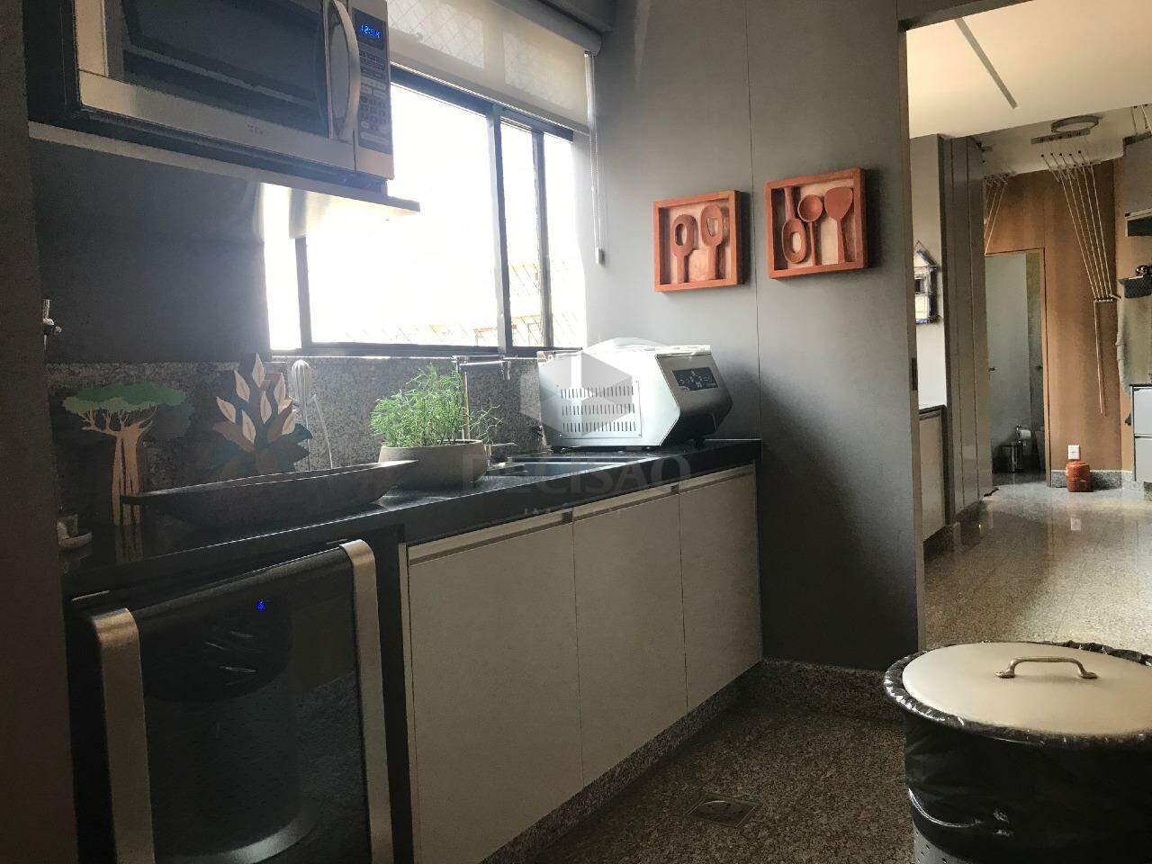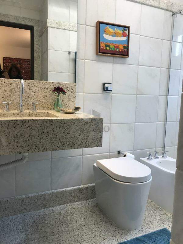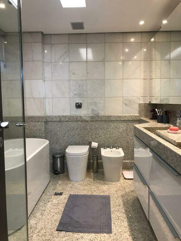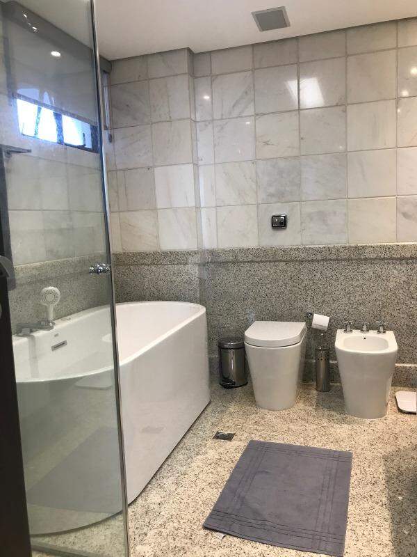 Apartamento: 100% reformado, maravilhoso! Salão para vários ambientes em marmore travertino, lavabo, varanda, 04 suites trasformado em 03, todas com armários novos, banheiros com louça nova, sendo suite master com escritorio, closet (01 dos quartos), parte intima toda em carpete, rouparia, cozinha toda montada, area de serviço, despensa e banho de empregada.