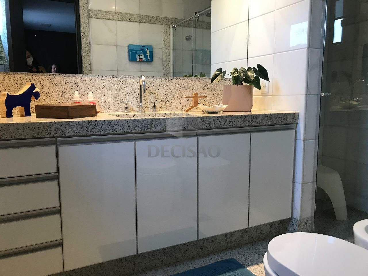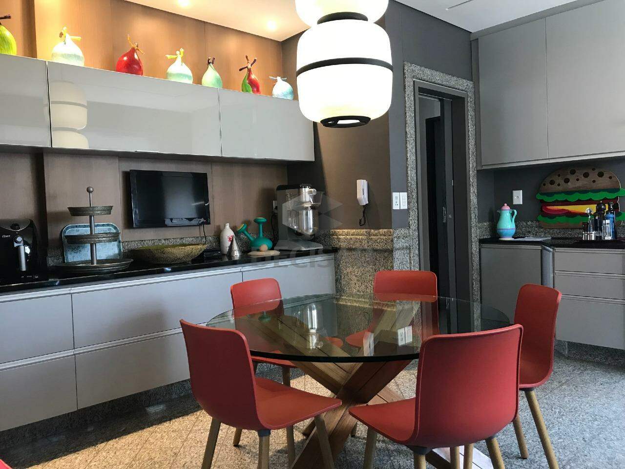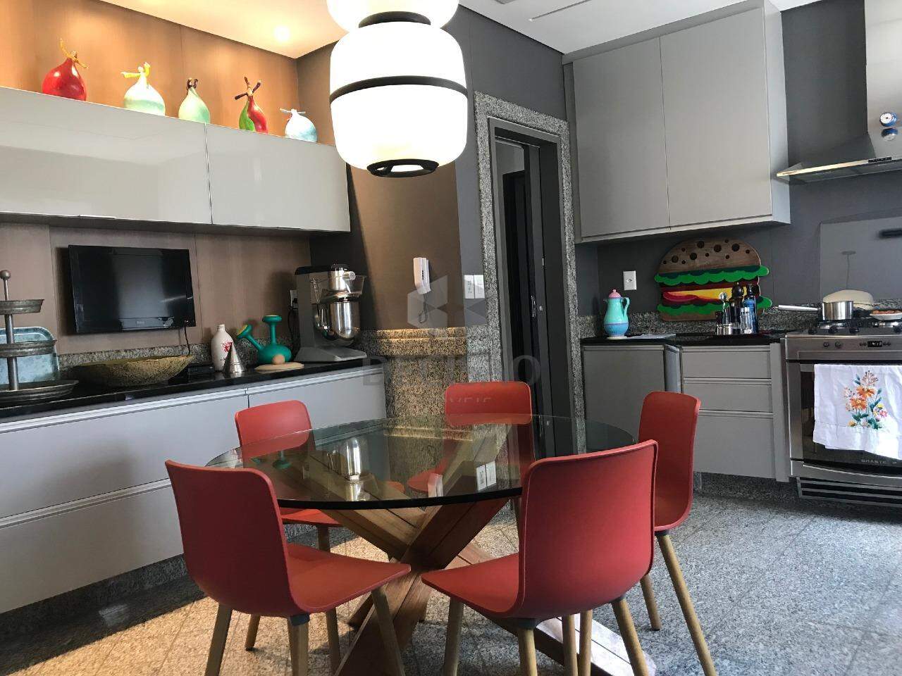 Apartamento: 100% reformado, maravilhoso! Salão para vários ambientes em marmore travertino, lavabo, varanda, 04 suites trasformado em 03, todas com armários novos, banheiros com louça nova, sendo suite master com escritorio, closet (01 dos quartos), parte intima toda em carpete, rouparia, cozinha toda montada, area de serviço, despensa e banho de empregada.