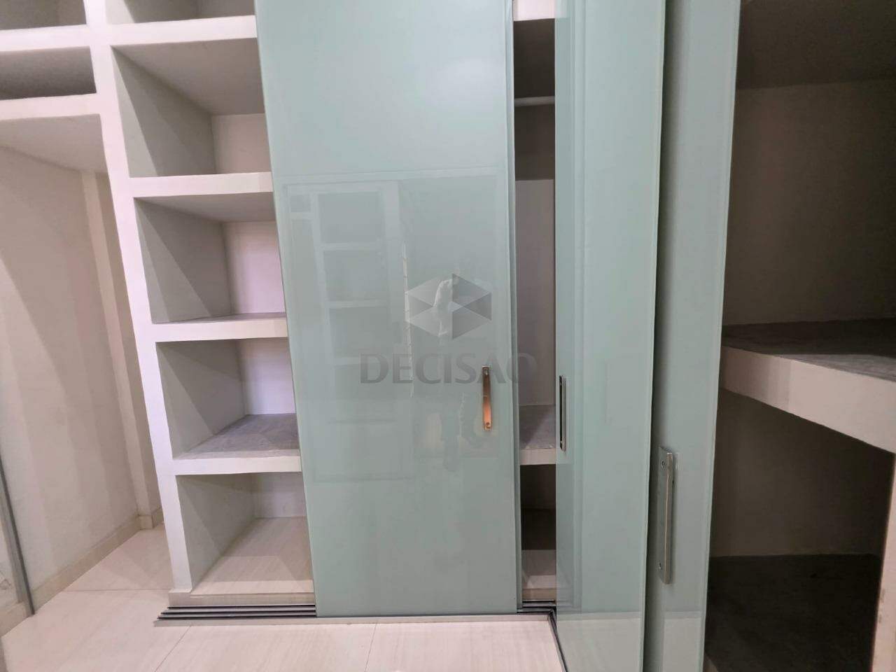 Sala ampla, 03 quartos, sendo 01 suíte (com closet), banho social (box, armários), cozinha americana com armários, lavanderia, sala de convivência, área livre, dce.