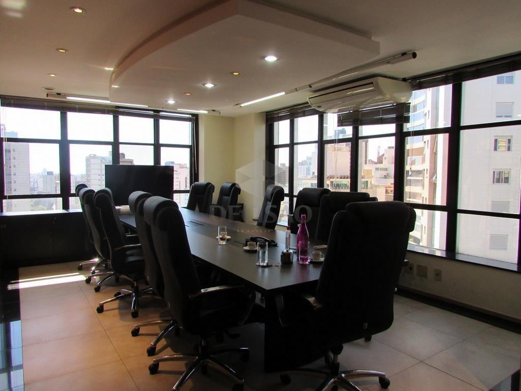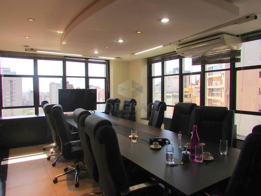Andar corrido: Hall de entrada e porta dupla blindada. Andar (em porcelanato), teto rebaixado, ar-condicionado, dividido em 5 salas amplas, 04 banheiros com circulação de ar, ampla copa e grande corredor de circulação.