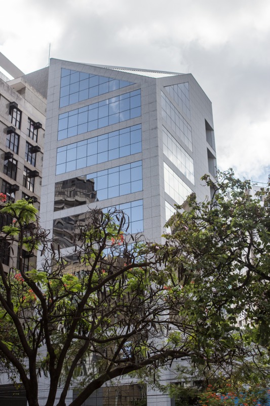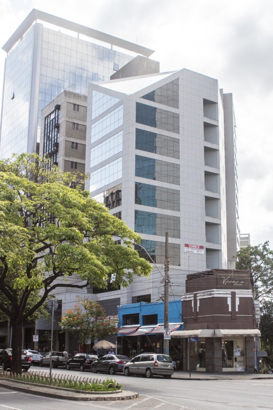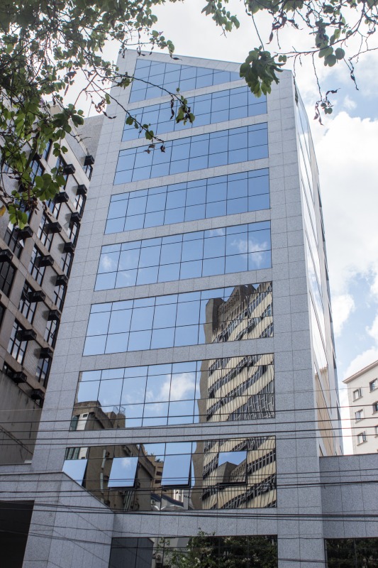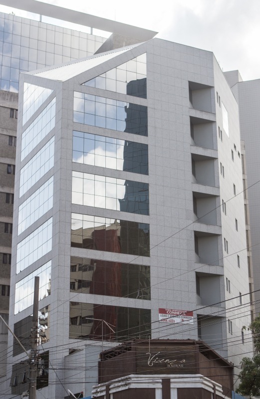 Prédio: Em localização estratégica, próximo ao TRT, Santander e Estado de Minas. 10 andares com entrada pela Rua Bernardo Guimarães. O prédio é revestido em granito, e esquadrias em alumínio com vidro prata. Hall social decorado e 2 elevadores. As salas serão entregues sem acabamento com 02 banheiros prontos em cada pavimento, com paredes e piso em cerâmica e bancada em mármore. Todas as salas tem local para instalação de ar-condicionado central. 160m² por andar.