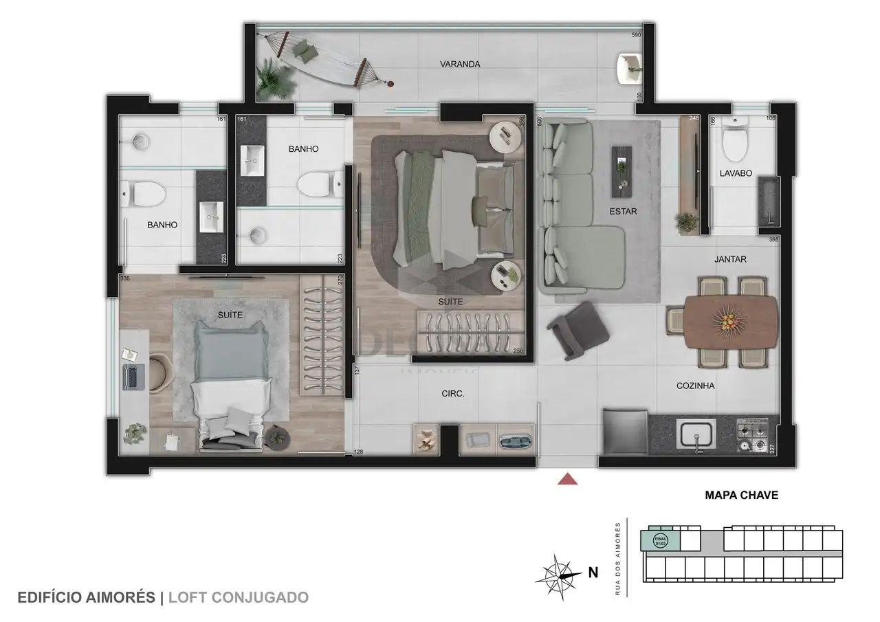 OBS: Possibilidade de unificação de 02 unidades vizinhas (transformando-os em um apartamento com 02 quartos)