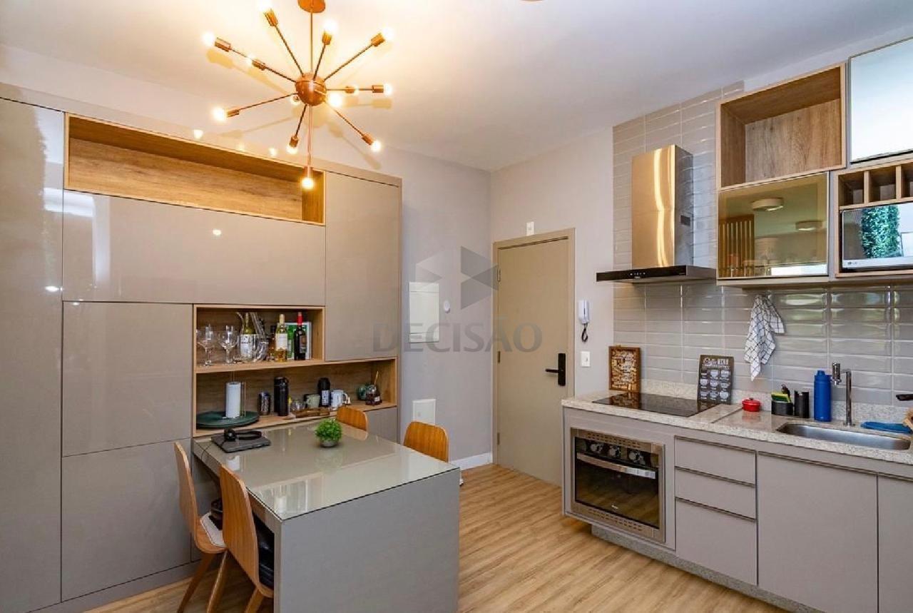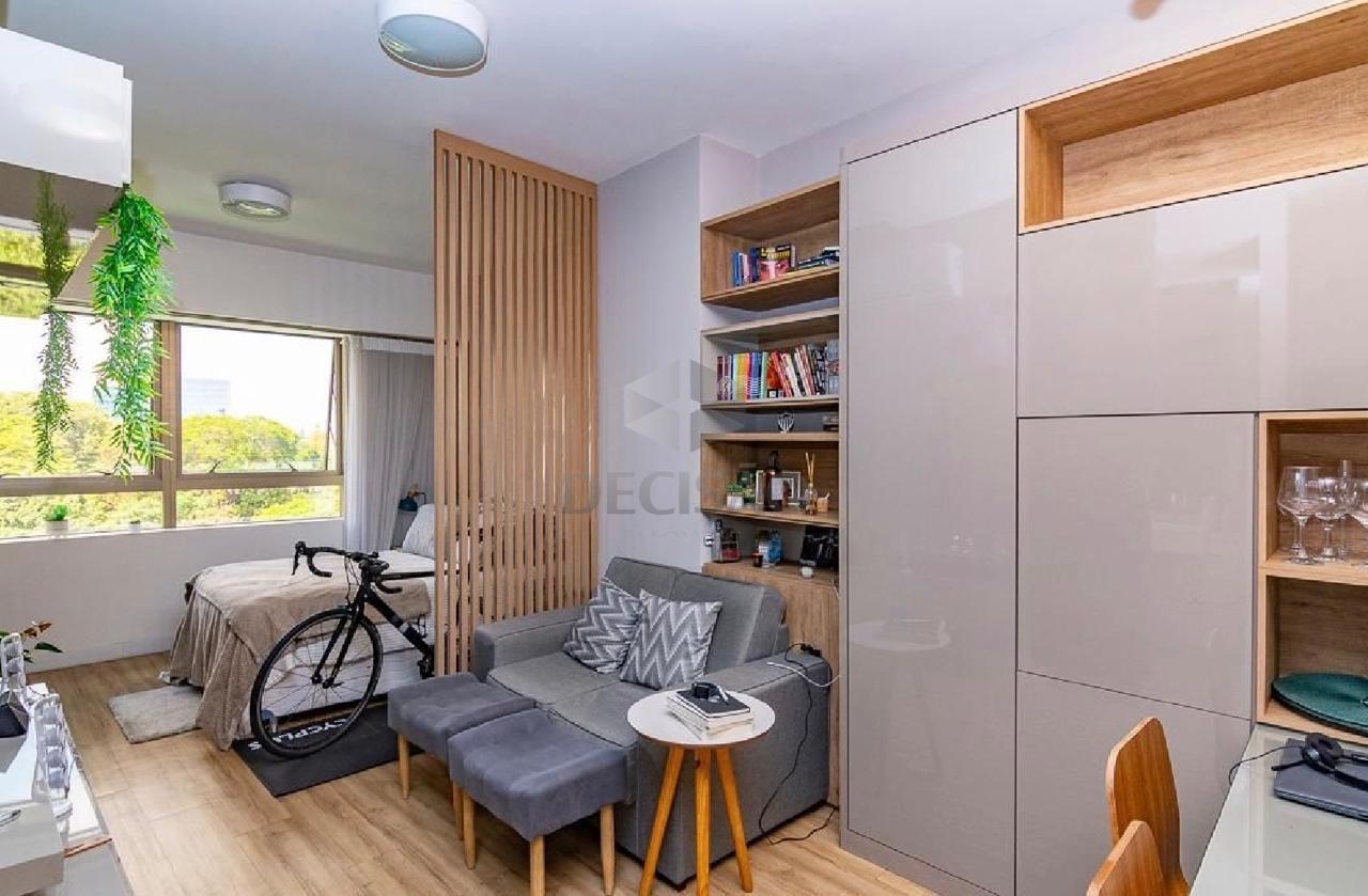 Studio montado, sala, 01 quarto, banho social(com toucador, armário e box), cozinha montada.