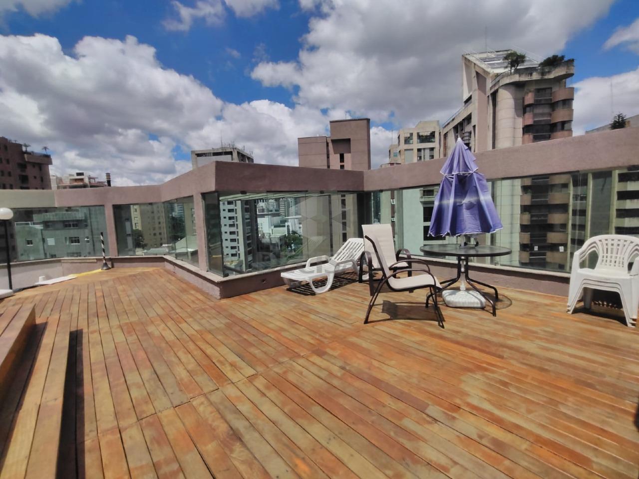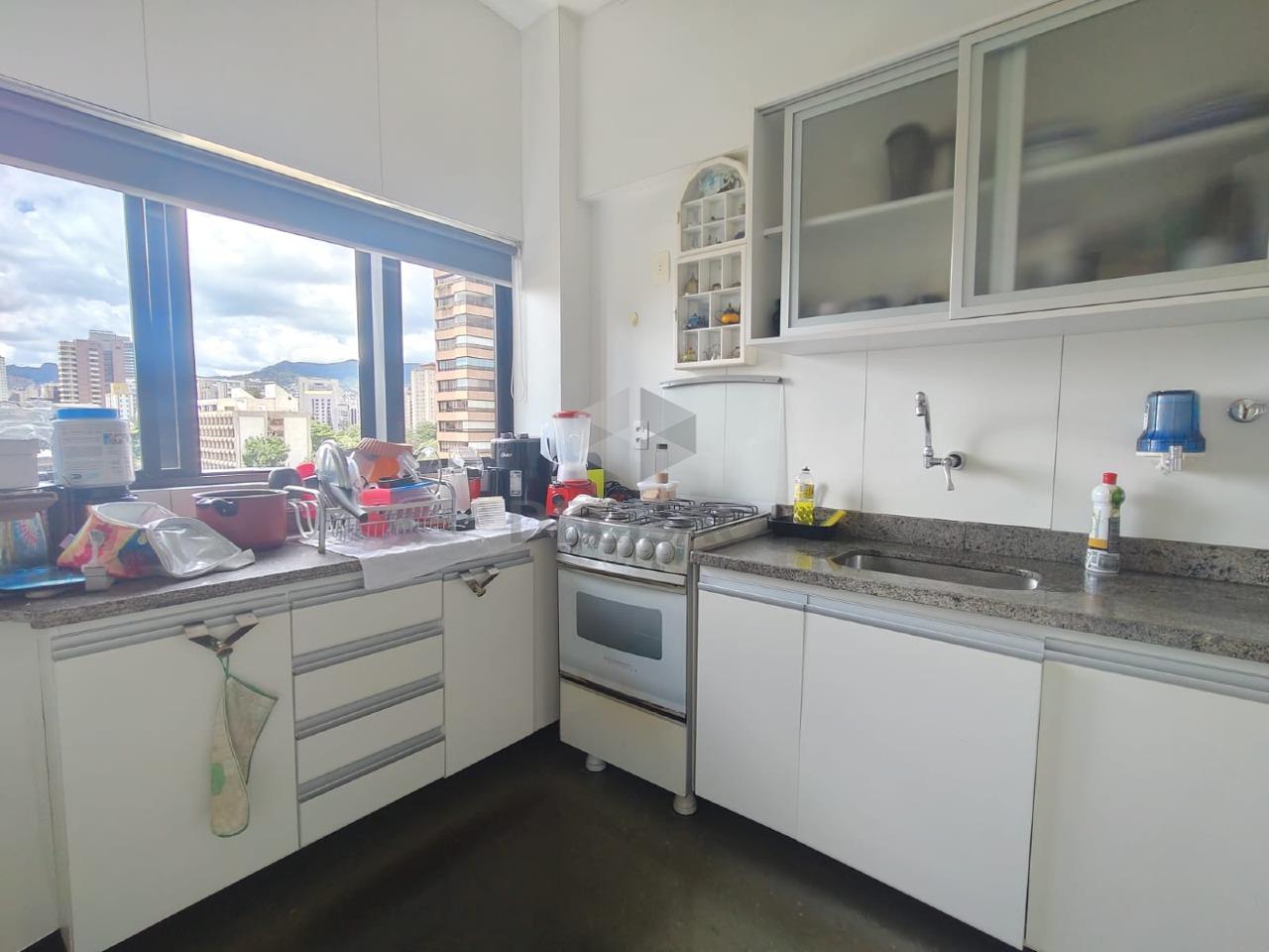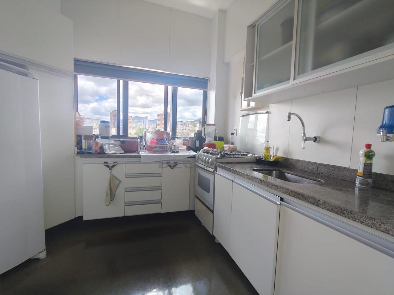 Apto: Sala para 02 ambientes, varanda com linda vista, 01 quarto com armários, ar-condicionado, 01 banho (com box blindex, armário e espelho), cozinha com armários e passa pratos.
