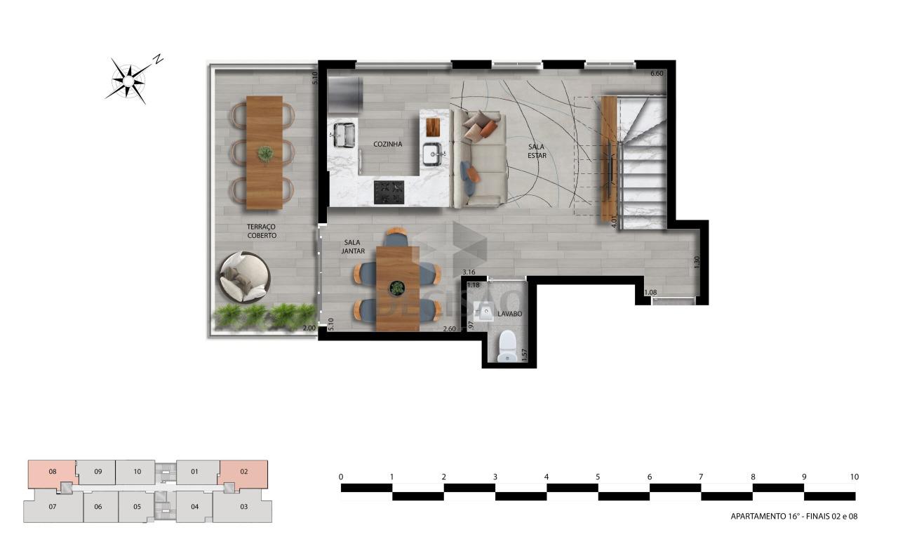 Prédio: Alto padrão de acabamento, com tecnologia e acesso digital pelo aplicativo, portaria 24 horas, água e gás individualizados, alarme, circuito tv, jardins, lazer com piscina com borda infinita, spa, espaço gourmet, playground, espaço fitness, espaço beleza, salão de festas, bar café, louge, bicicletário, lavanderia, mini mercado, coworking, quadra dupla com beach tênis, voley, futevôlei, cinema ao ar livre, portão eletrônico, 01 vaga.