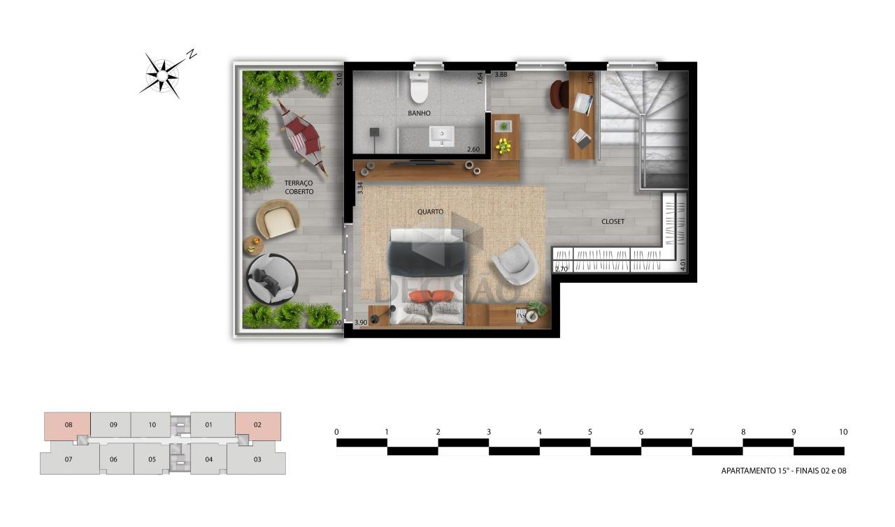 OBS: Unidade entregue com infra estrutura completa de ar-condicionado e nicho no banho.