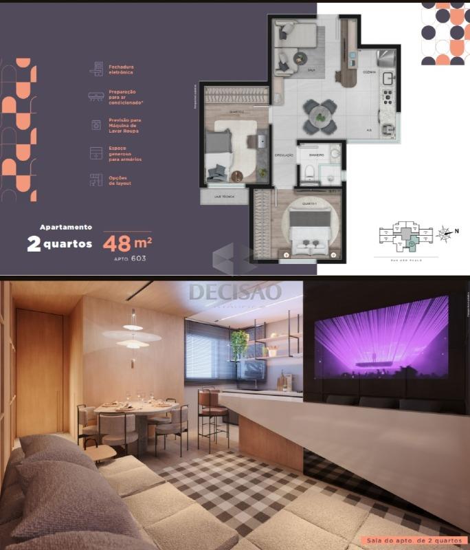 Apto 02 quartos: Salão (piso em porcelanato), 02 quartos, 01 banho, cozinha e área de serviços ((pré disposição para ar-condicionado, tomadas usb e fechadura eletrônica).