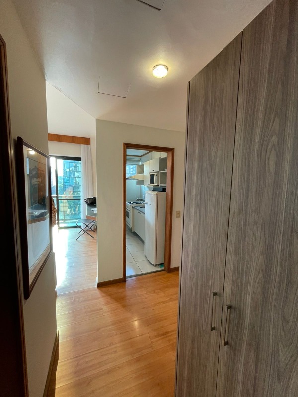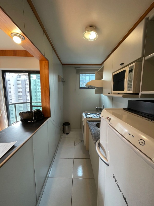 Prédio Em excelente localização, com uma vaga de garagem livre e coberta (serviço de manobrista), elevador, hall social, serviço de faxineira três vezes na semana, lazer com salão de festa, piscina, sauna, quadra de squash, academia, sala de reuniões, espaço de relaxamento e lavanderia. Apto Sala com piso em laminado, varanda e ar condicionado; cozinha com armários piso em cerâmica e bancada em granito, área de serviço; 01 quarto com piso em laminado com armários planejados e ar condicionado; 01 banho com box, armário e espelho. Portaria 24 horas, condomínio oferece serviço de "marido de aluguel".