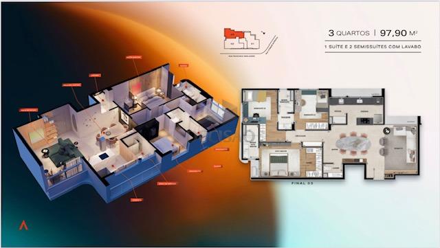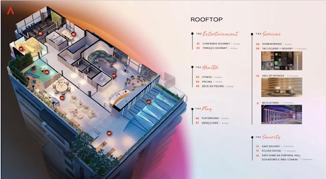 Prédio: Excelente localização, de luxo, todo revestido, lazer premium no rooftop com salão de festas, fitness, espaço kids, home working, espaço gourmet, piscina aquecida, bicicletário, playground, 02 vagas (vide tabela).