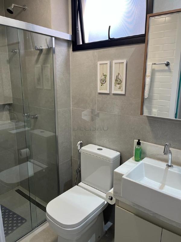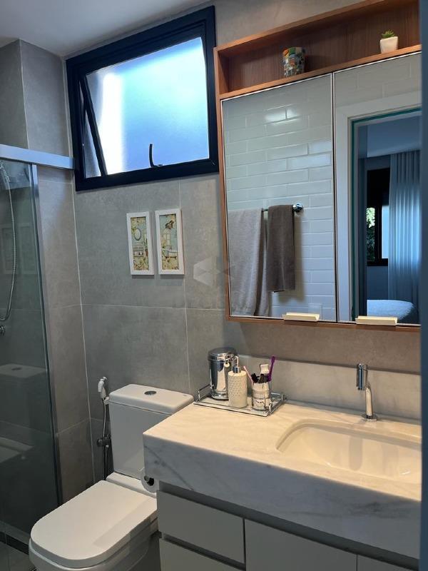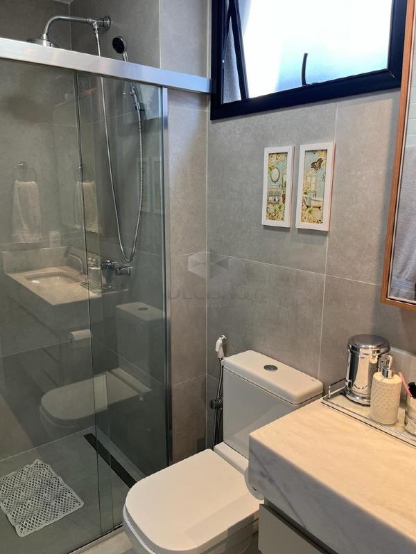 Apto: Sala para 02 ambientes (piso em porcelanato), 02 quartos com armários, sendo 01 suíte e banho social (com box, armários), cozinha com armários planejados, área de serviços.