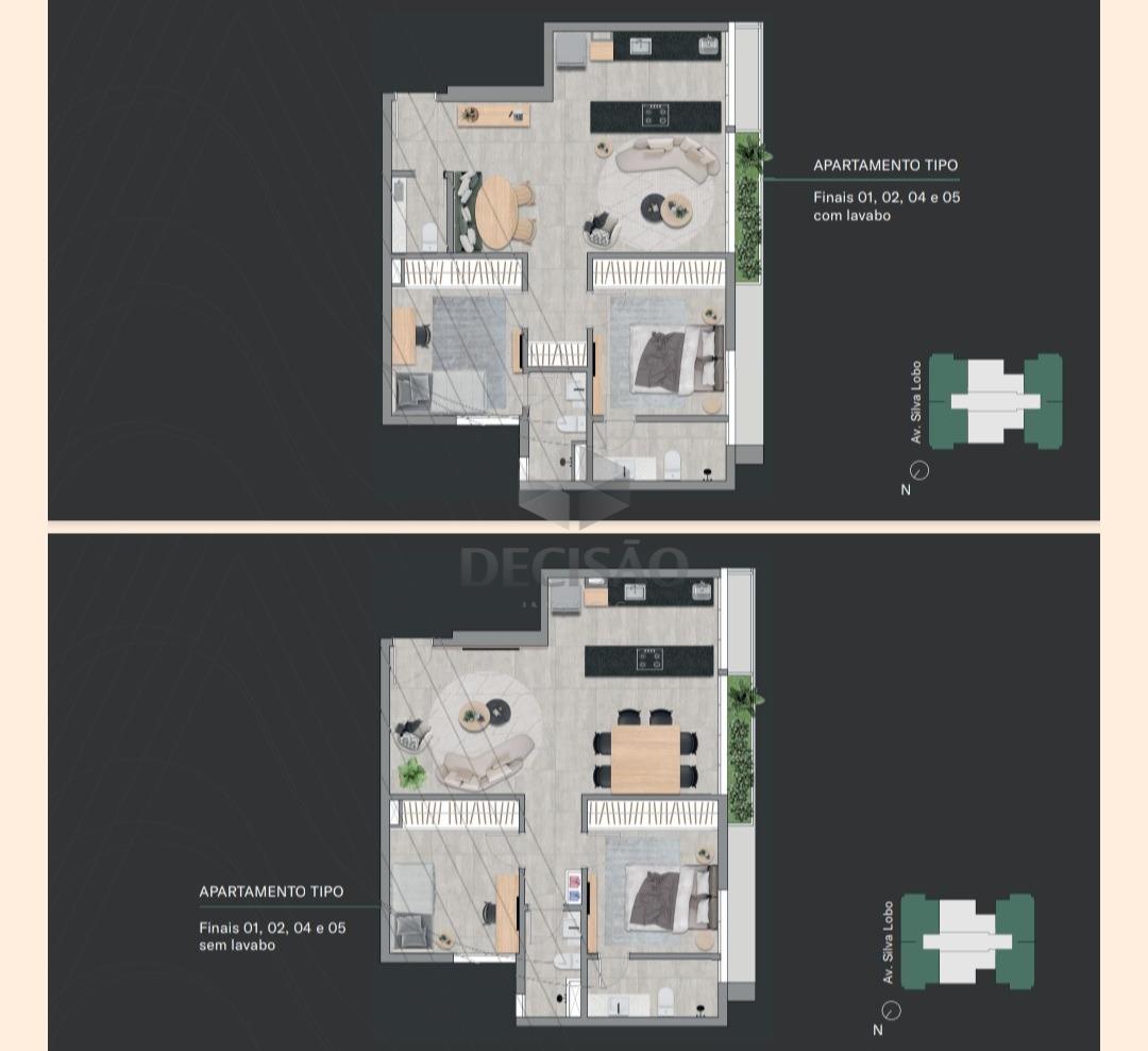 Sala para 02 ambientes, 02 quartos, sendo 01 suíte e banho social, cozinha estilo americana, área de serviços.