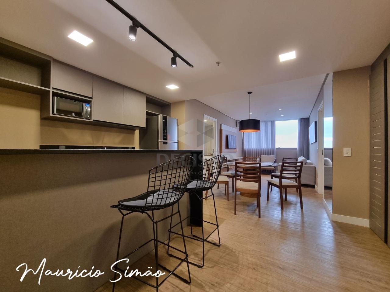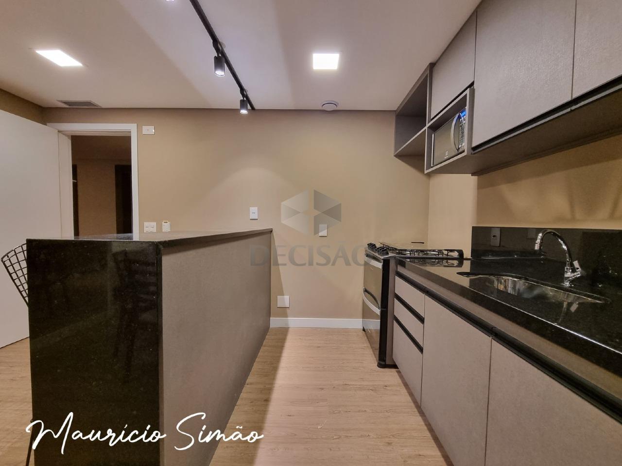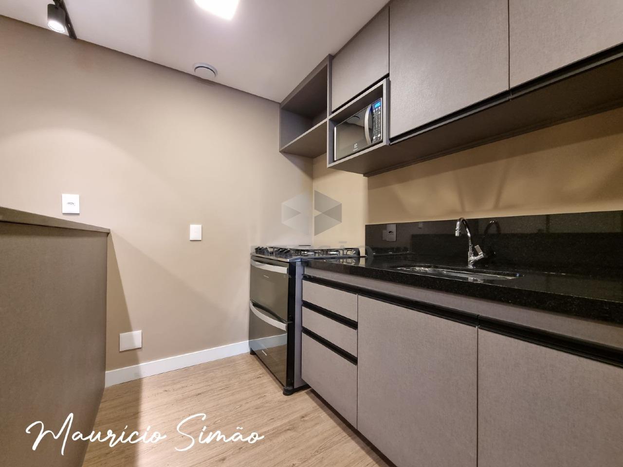 Apto: Estilo apart hotel, salão (piso em porcelanato), lavabo, suíte, cozinha americana.