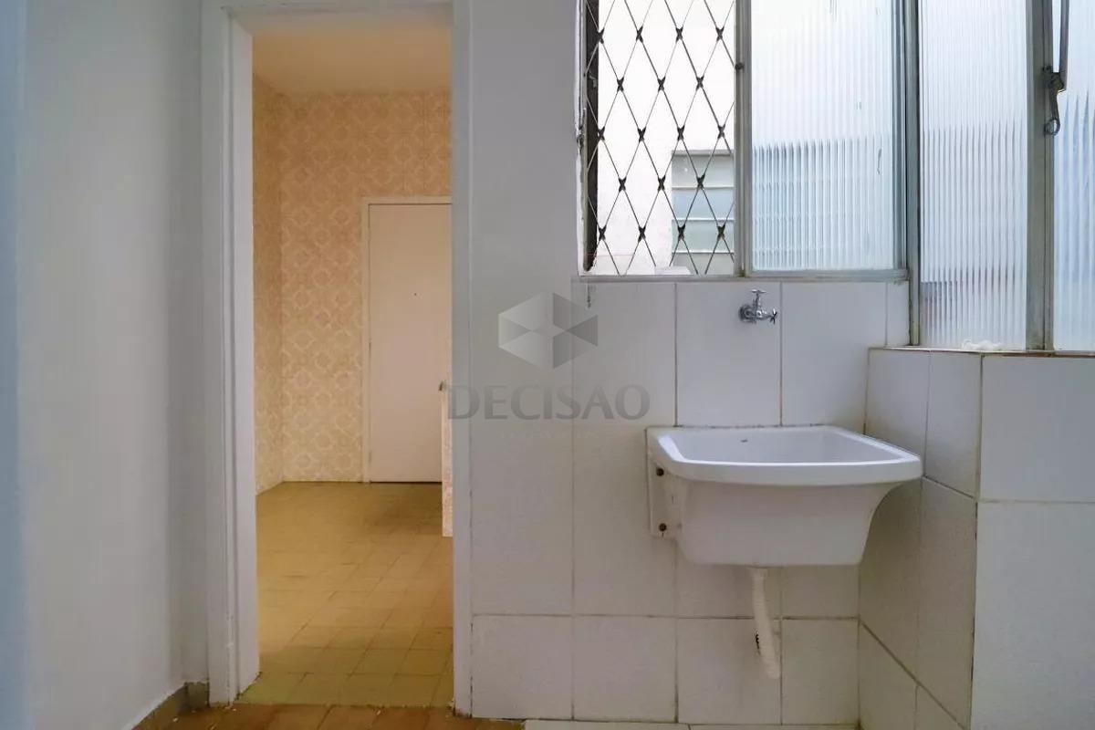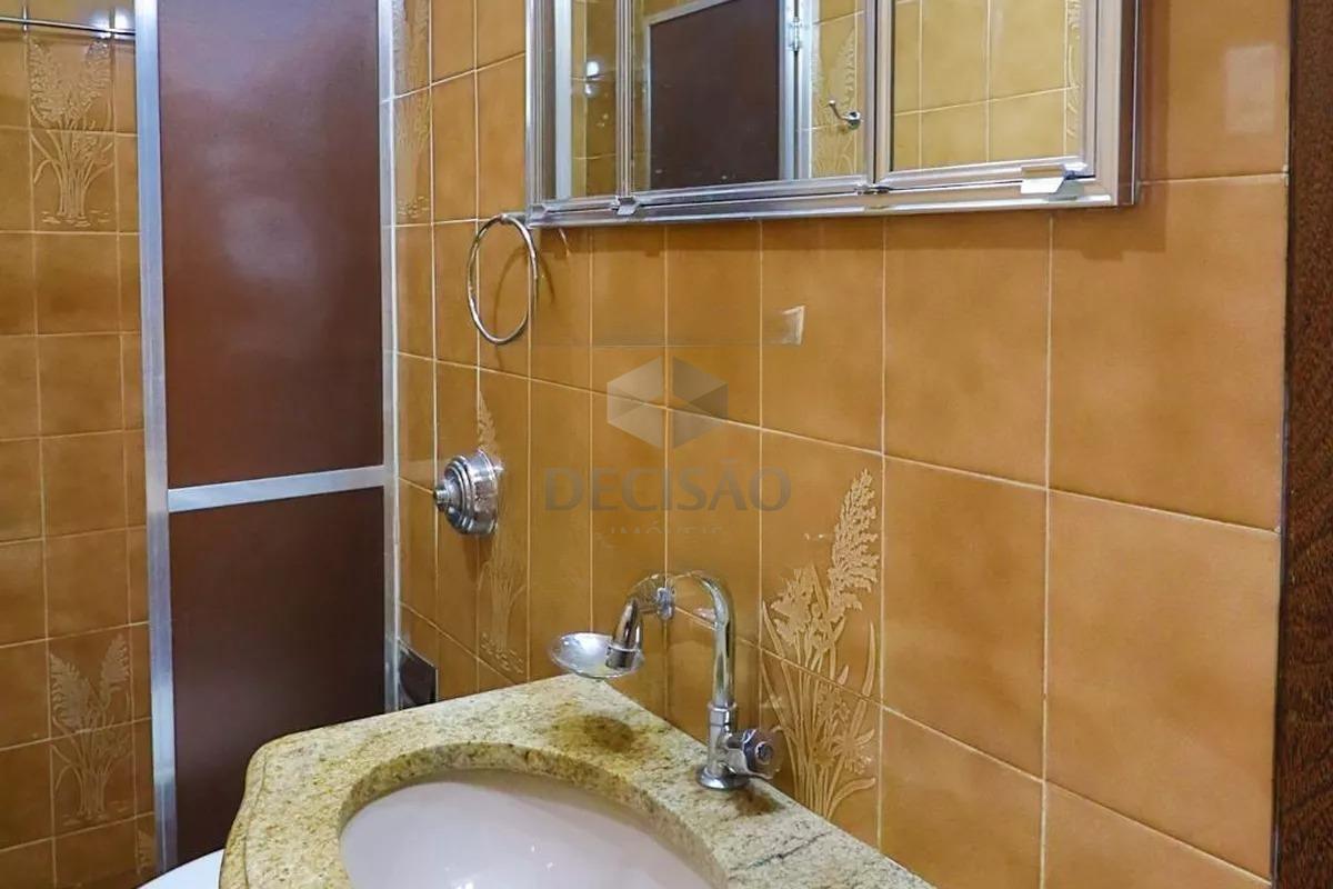 Apto: Sala para 02 ambientes, 02 quartos com armários, sendo 01 suíte, banho social e suíte (com box, espelho), cozinha com armários), área de serviços com quarto de empregada.