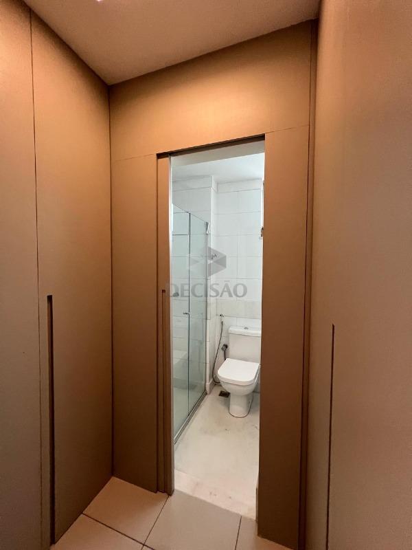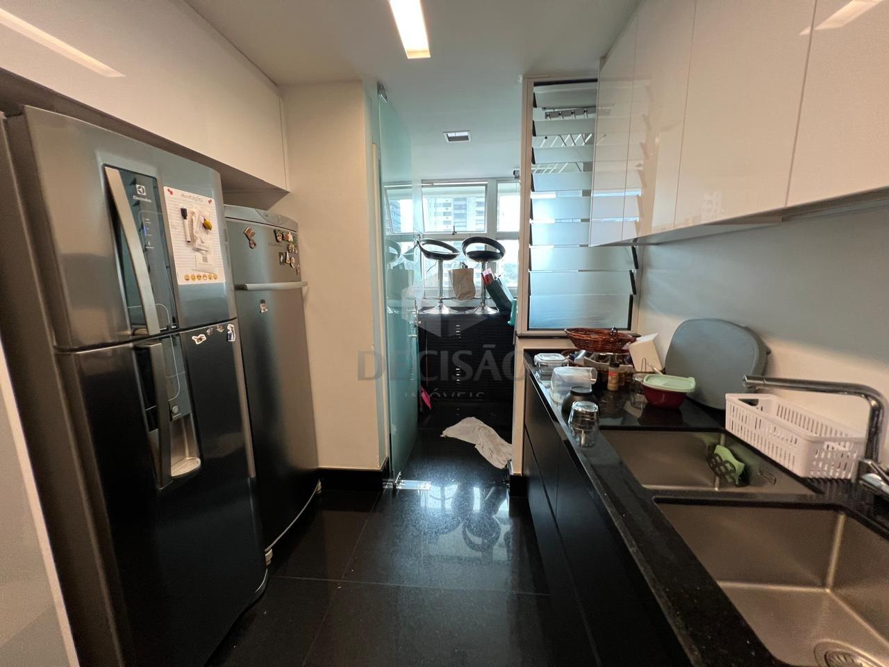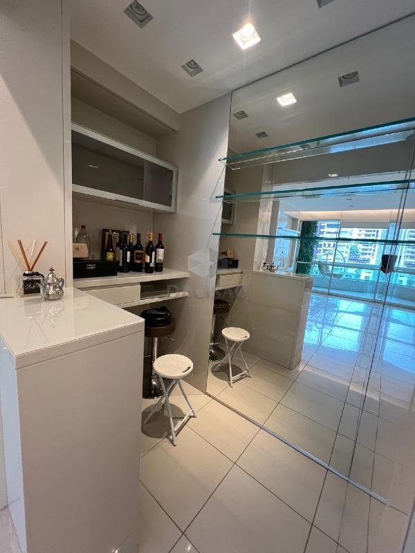 Apto: Sala para 02 ambientes, com varanda, barzinho com adega, 02 quartos com armários, sendo 01 suíte, banho social e suíte (montados), cozinha planejada com armários, área de serviços separada com armários, banho de serviço.