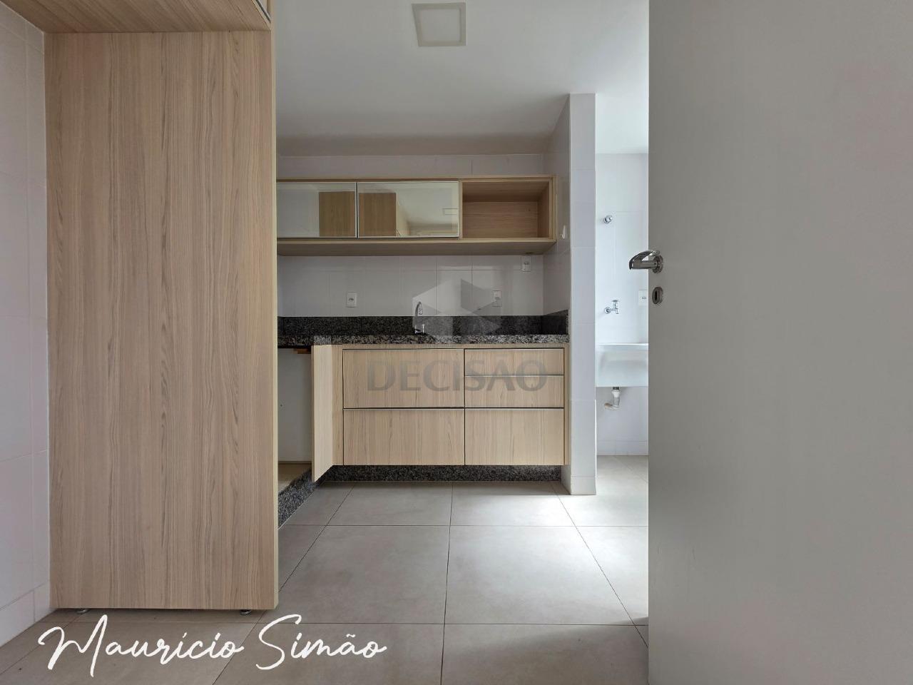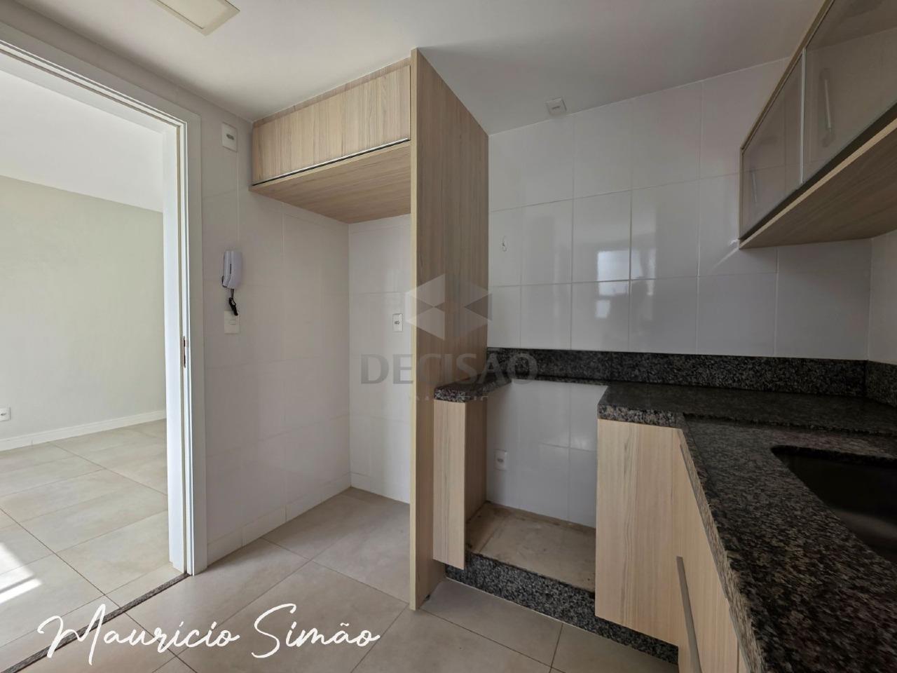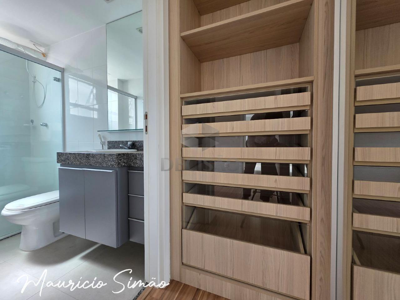 Sala para 02 ambientes (piso em porcelanato), 02 quartos com armários planejados, sendo 01 suíte e banho social (montados), cozinha planejada com armários, área de serviços.