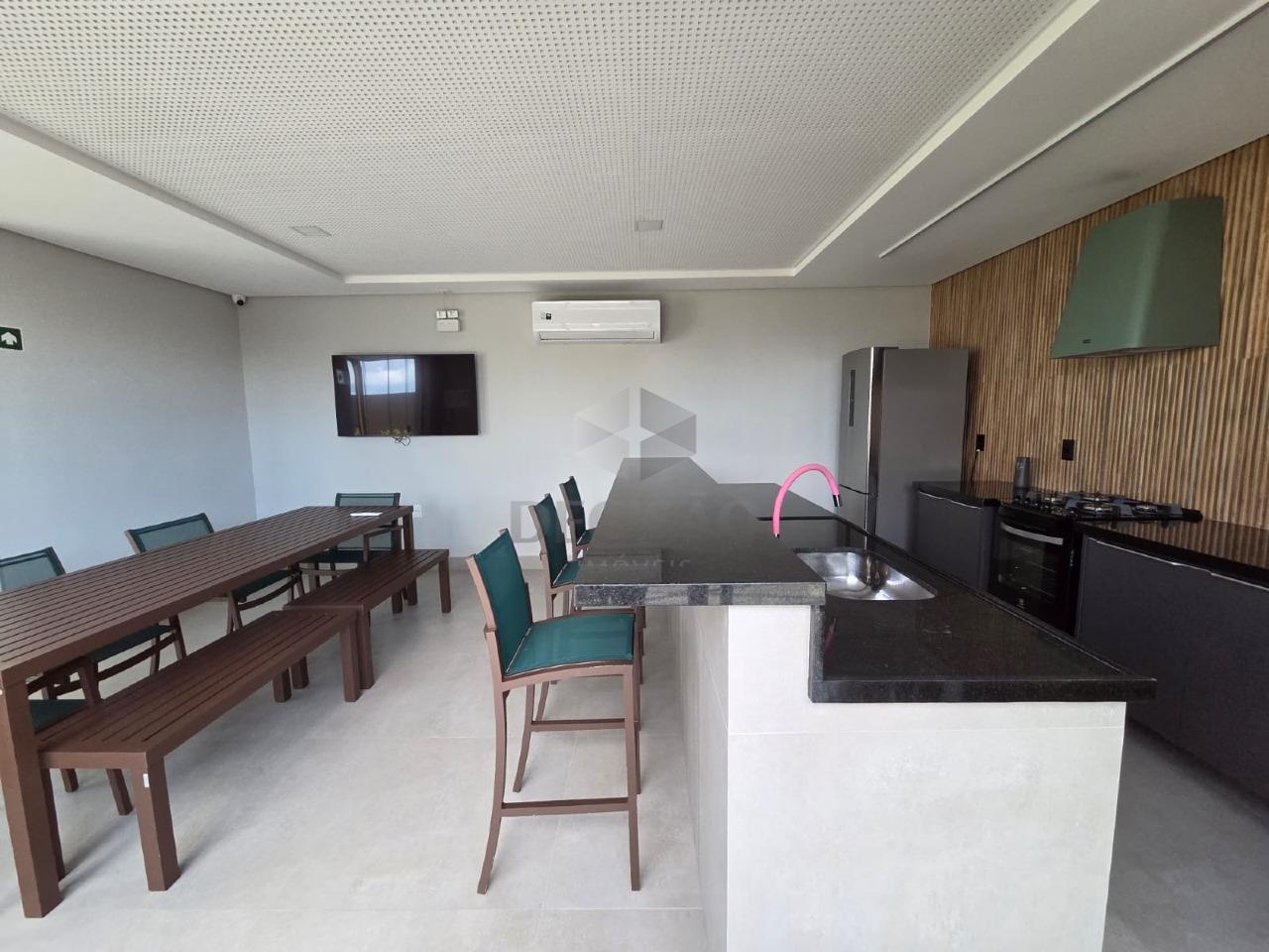 Sala para 02 ambientes, com varanda, 02 quartos com armários (piso em vinílico),sendo01 suíte, banho social (ambos com armários), cozinha estilo americana com armários, área de serviços com armários .