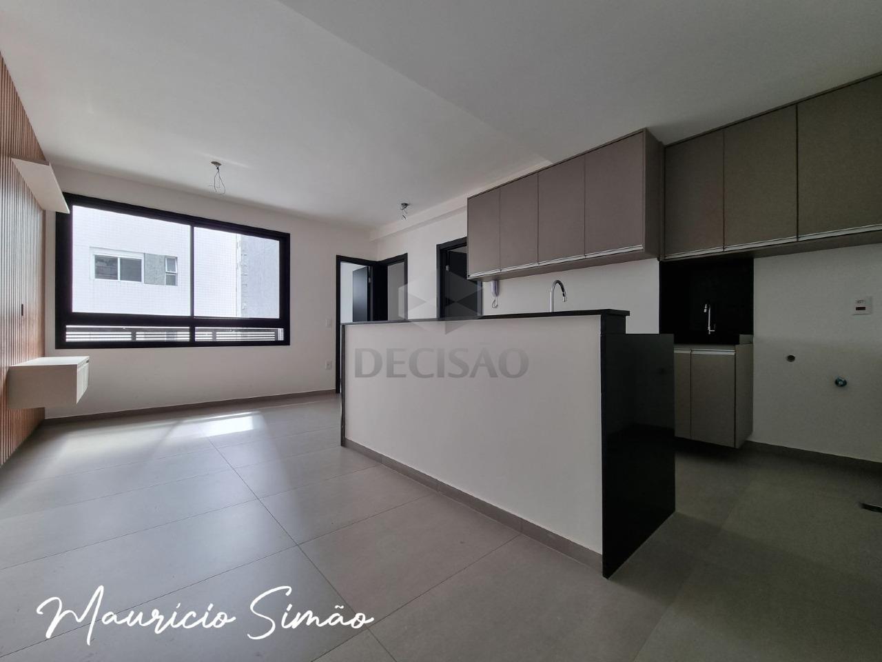Apto: Salão (piso em porcelanato), 02 quartos (piso em porcelanato), sendo 01 suíte, banho social, cozinha no conceito aberto, área de serviços.