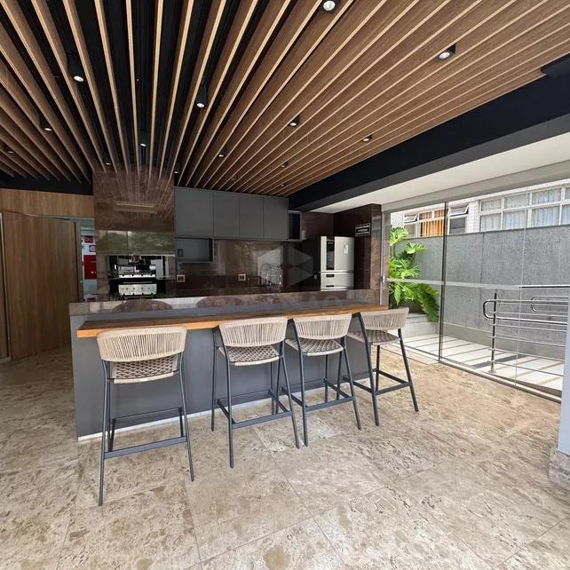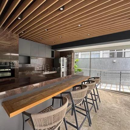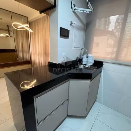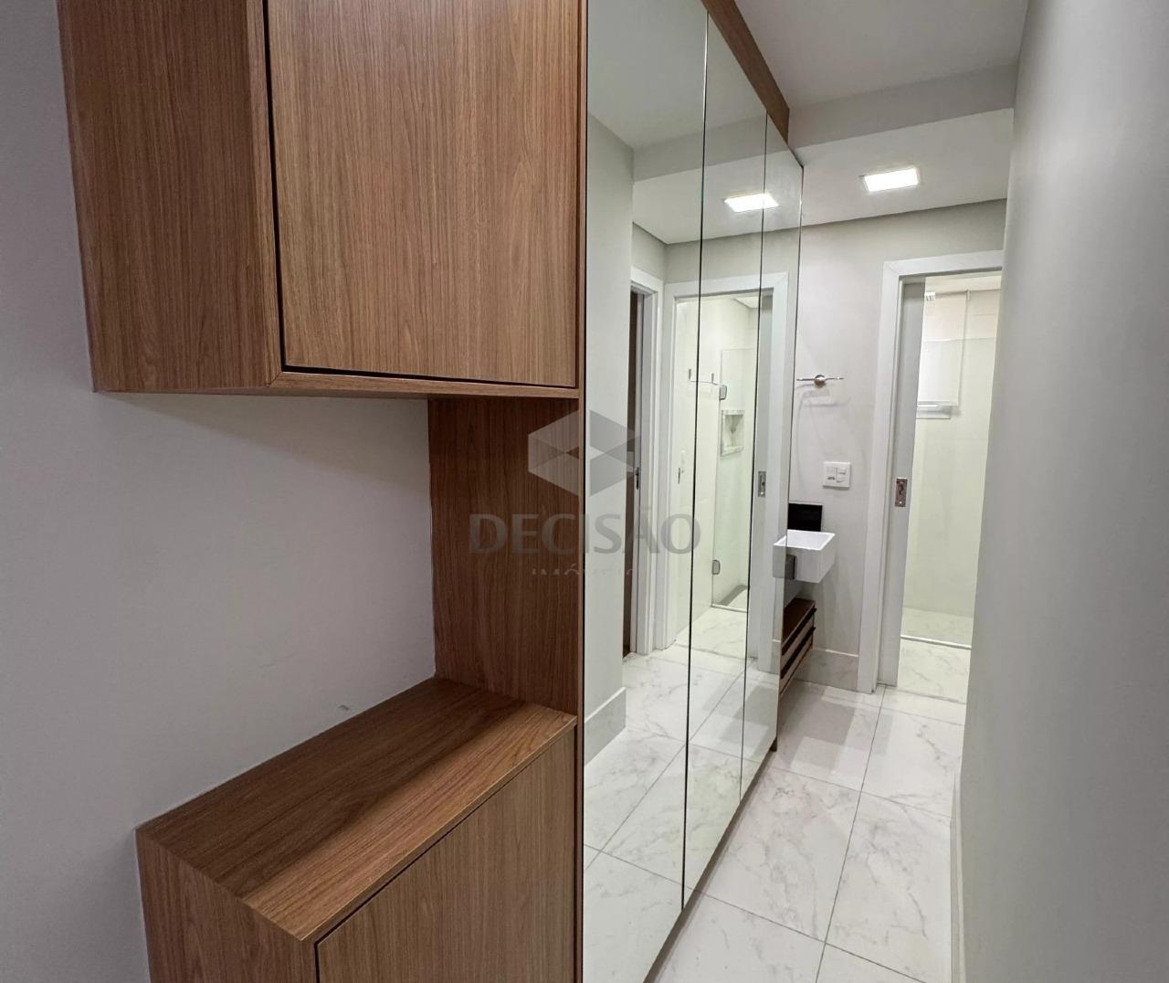 Apto: Sala para 02 ambientes, com painel de madeira, projeto luminotécnico, 02 quartos com armários, sendo 01 suíte, banhos (montados), cozinha planejada estilo americana conjugada com área de serviços.