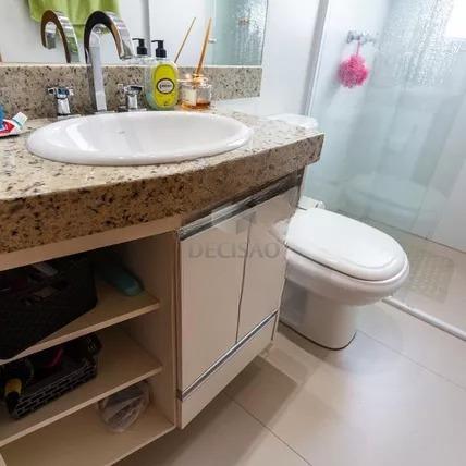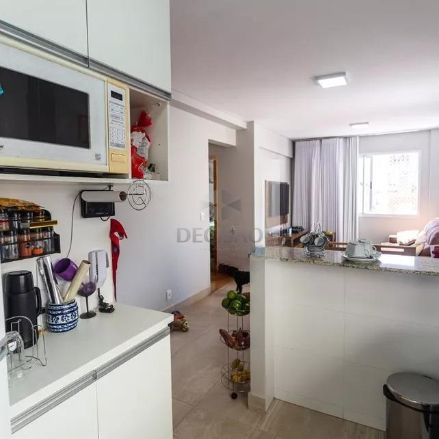 Apto: Sala para 02 ambientes, 02 quartos com armários, sendo 01 suíte, banho social e suíte (montados), cozinha planejada com armários, área de serviços.