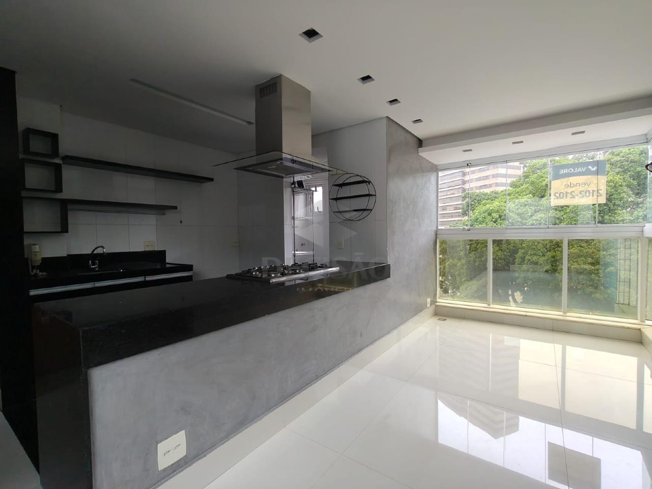 Apto: Salão para 02 ambientes, com teto rebaixado e iluminação indireta, varanda incorporada, lavabo, 02 quartos (sendo que 1 foi tirado aumentando a suíte), ficando 1 quarto com armários, 01 suíte montada, cozinha americana montada, área de serviços.