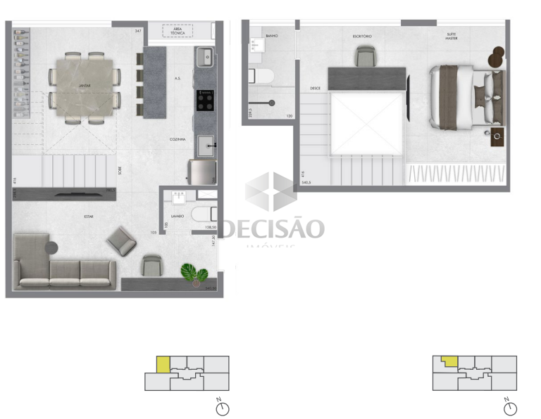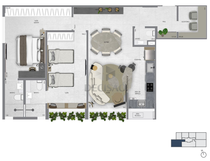 OBS: Em algumas plantas de 02 quartos não tem escritório (vide tabela)