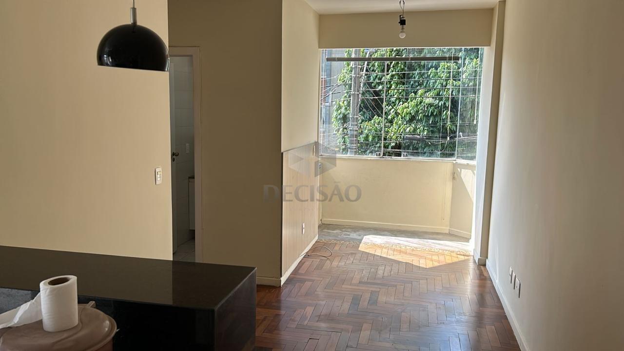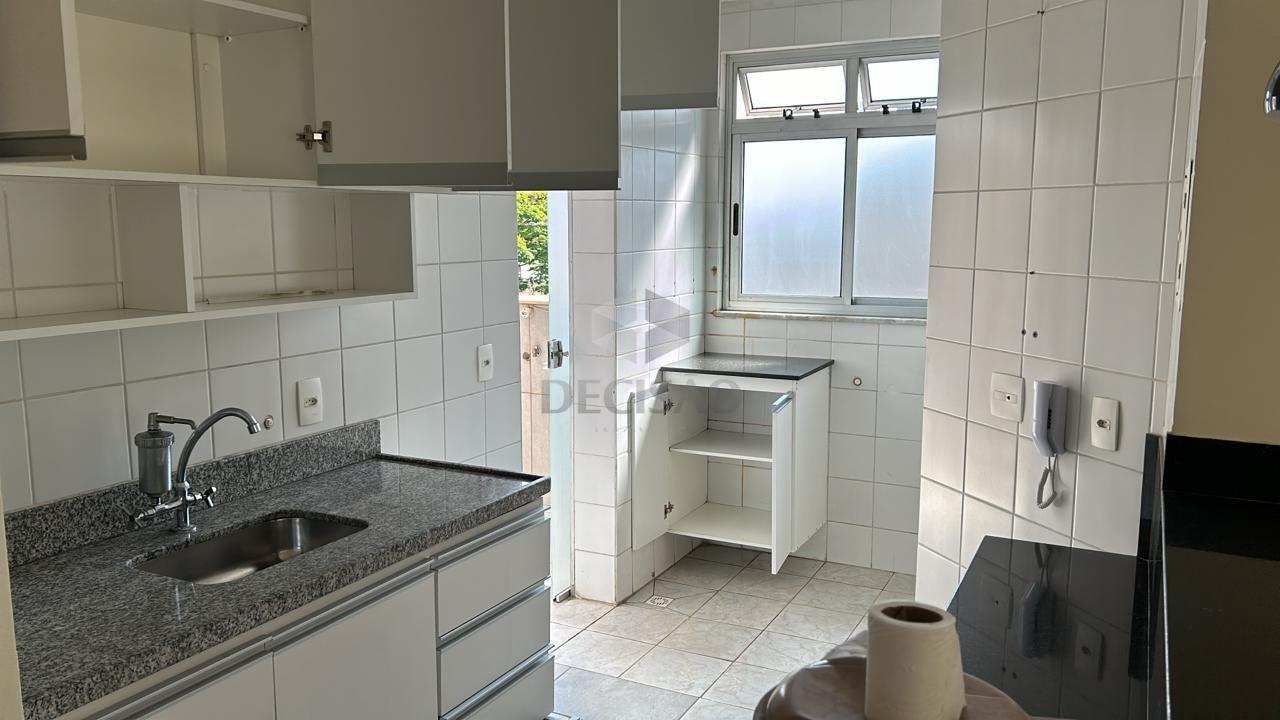 Apto: Sala para 02 ambientes, 02 quartos com armários, banho social (com box, espelho, armários), cozinha estilo americana com armários, área de serviços separada.