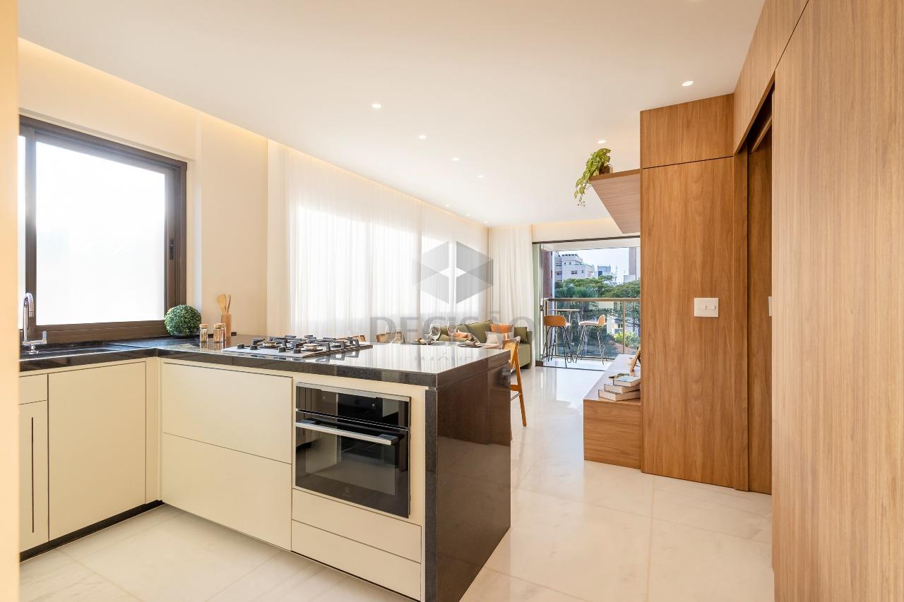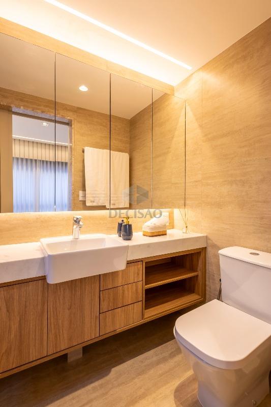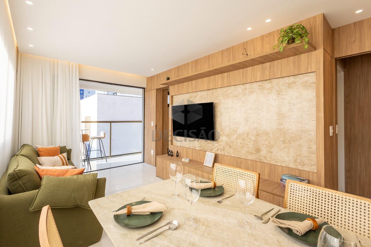 Apto: Salão amplo para 02 ambientes, lavabo e varanda com churrasqueira, 02 quartos (piso em laminado de madeira), 02 suítes amplas, cozinha americana, com área de serviços independente (piso em porcelanato).