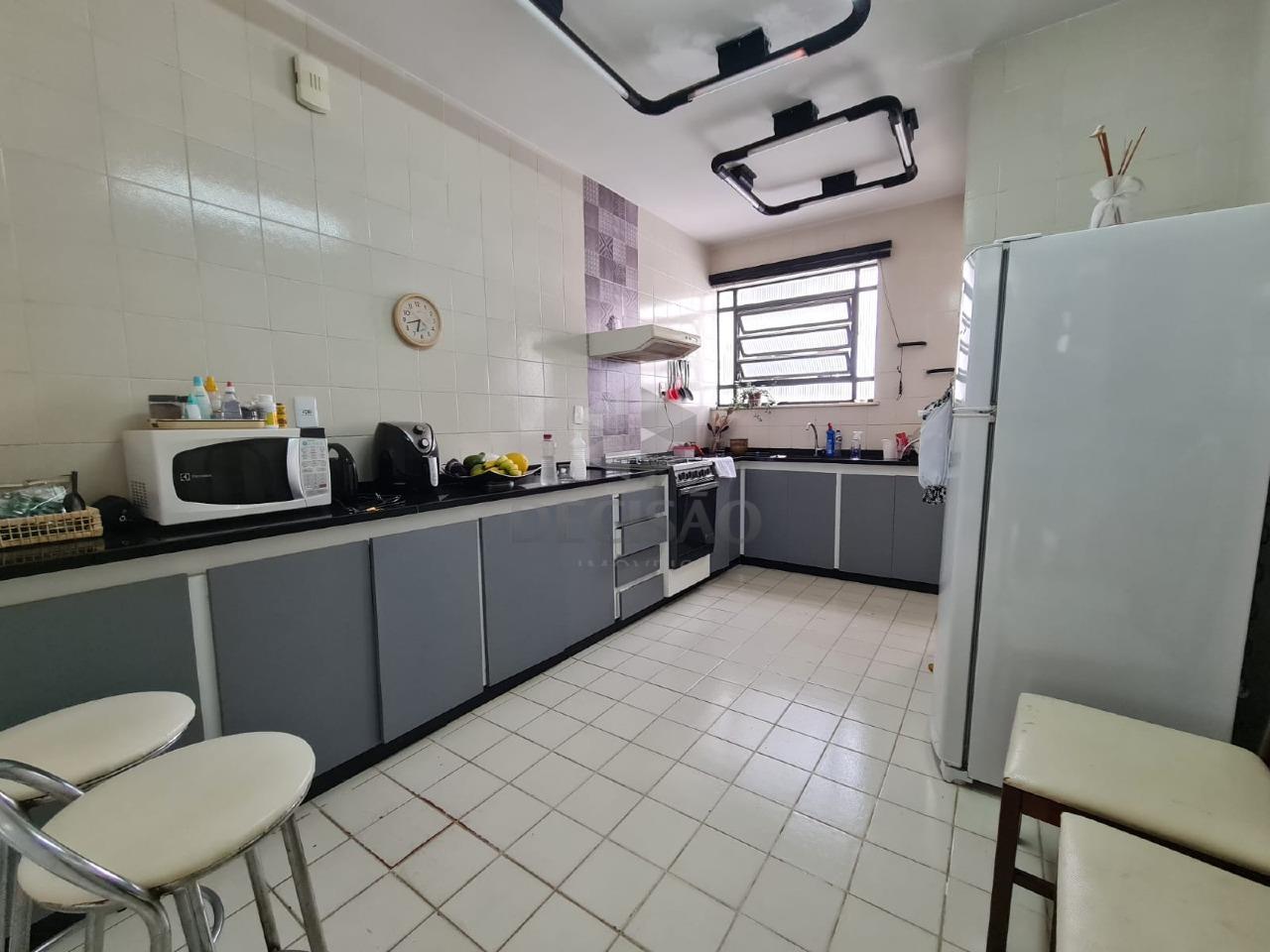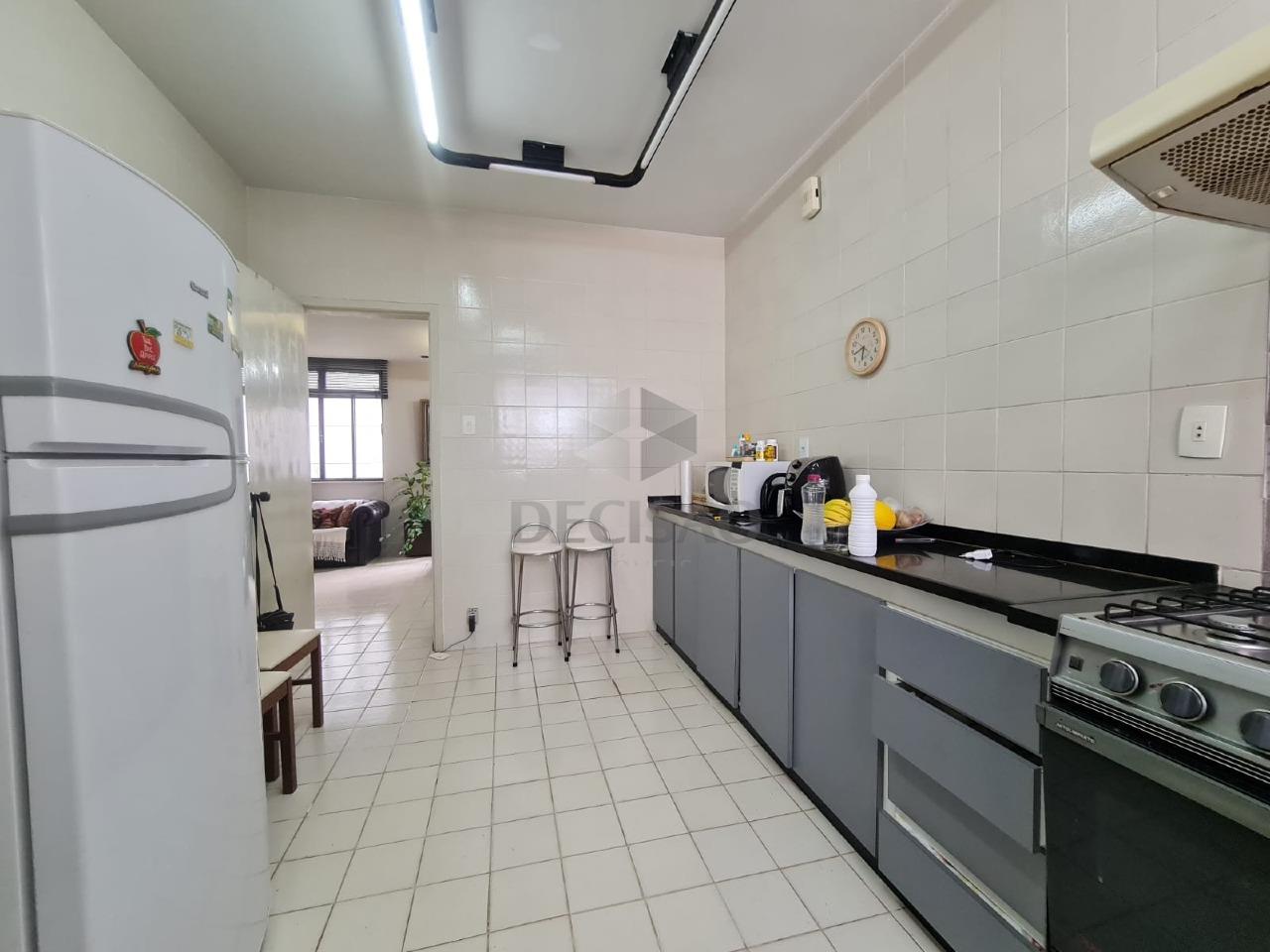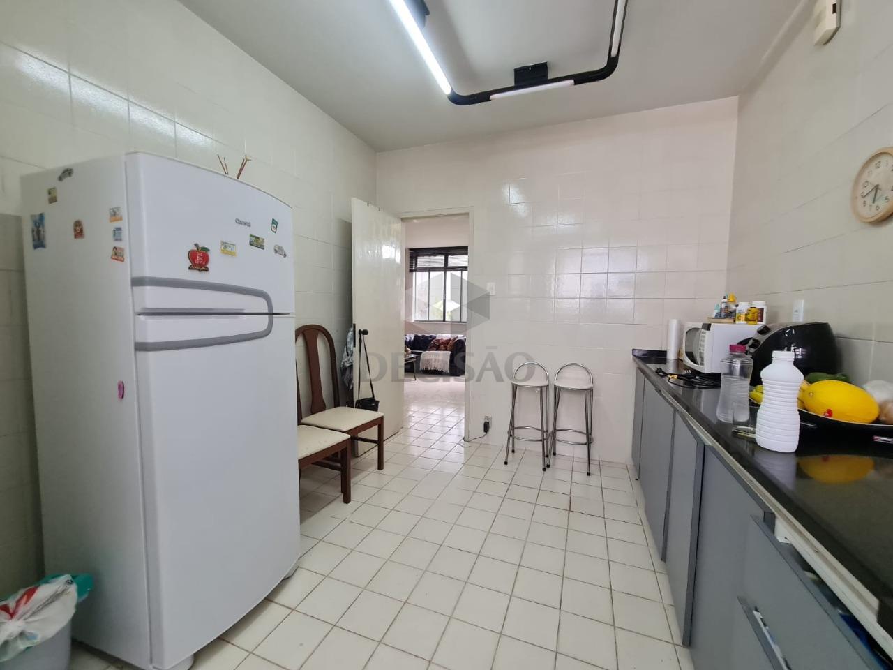 Apto: Salão para 02 ambientes, com teto em sanca, 03 quartos com armários (sendo que 1 foi tirado aumentando a sala - ficaram 2 quartos), banho social (com box blindex, armários e espelho), cozinha ampla com armários, área de serviços, dce.