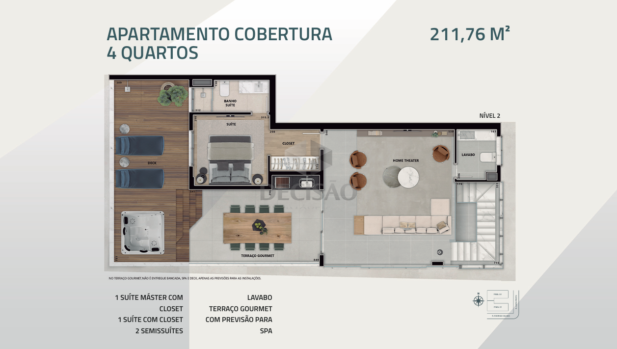 Prédio: Alto luxo, excelente localização, fachada revestida com porcelanato e acm, próximo a supermercados, farmácia, colégio Santo Agostinho, aquecimento gás, interfone, jardim lazer completo com salão de festas, espaço gourmet, varanda com espaço gourmet, piscina com deck, academia, massagem, playground, quadra, piscina infantil, delivery, home working, bicicletário com oficina compartilhada (infraestrutura completa para ar-condicionado na suíte master), portão eletrônico, 02 ou 03 vagas (vide tabela ).