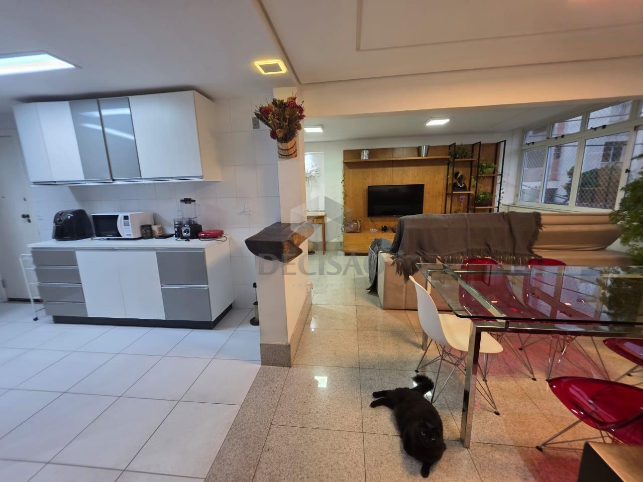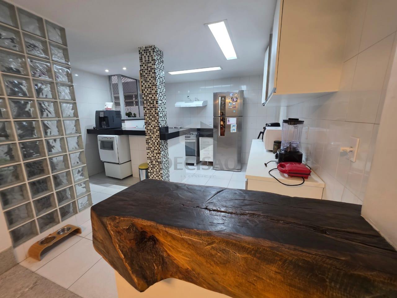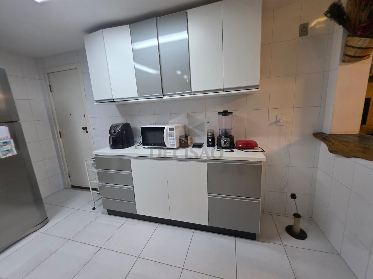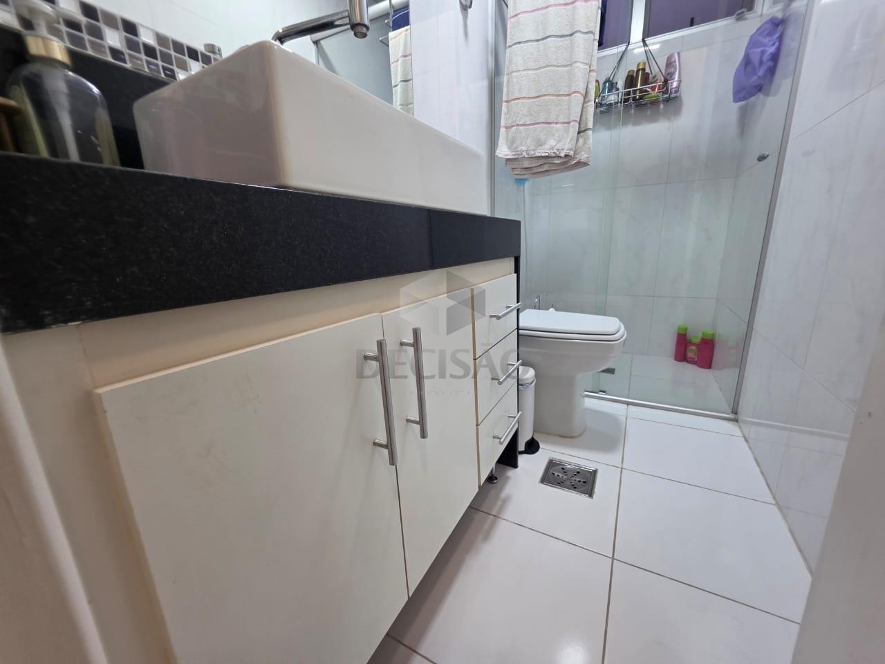 02 sala c/ piso em granito, 03 quartos, c/ piso em laminado marfim, sendo 01 suite e 01 banho social (box / armarios), rouparia, cozinha c/ armários, área de serviço e banho de serviço.