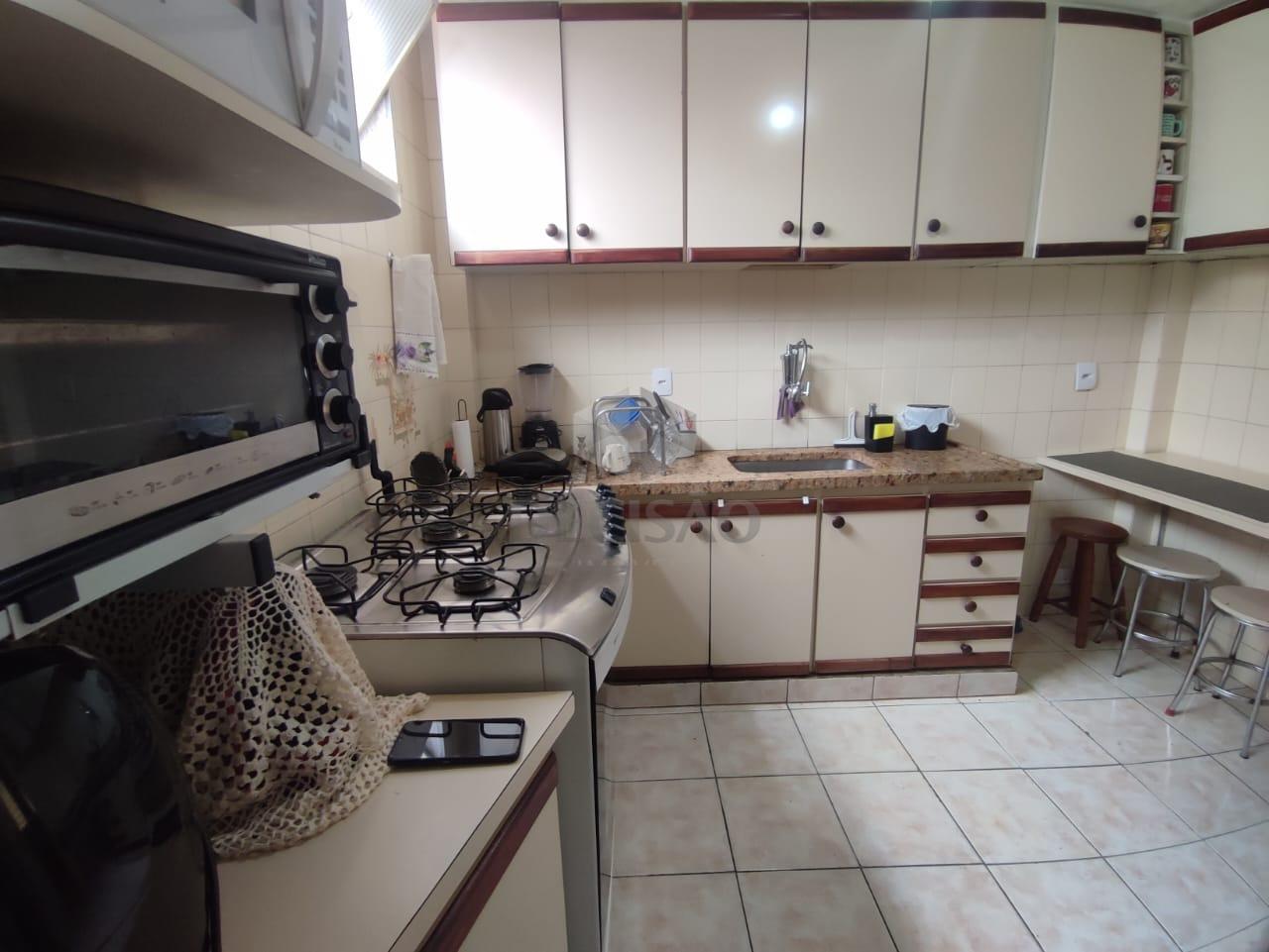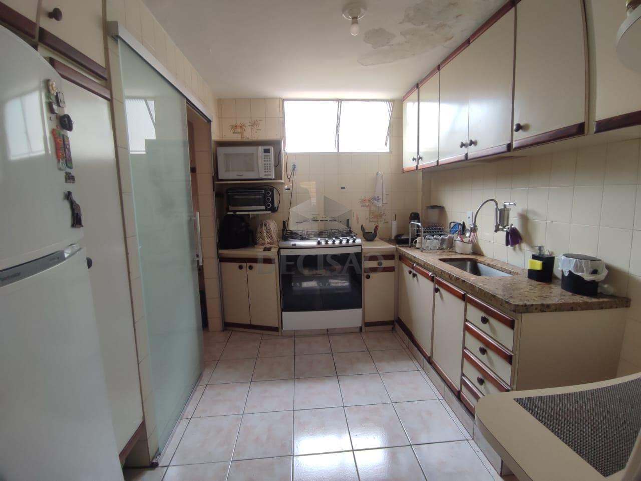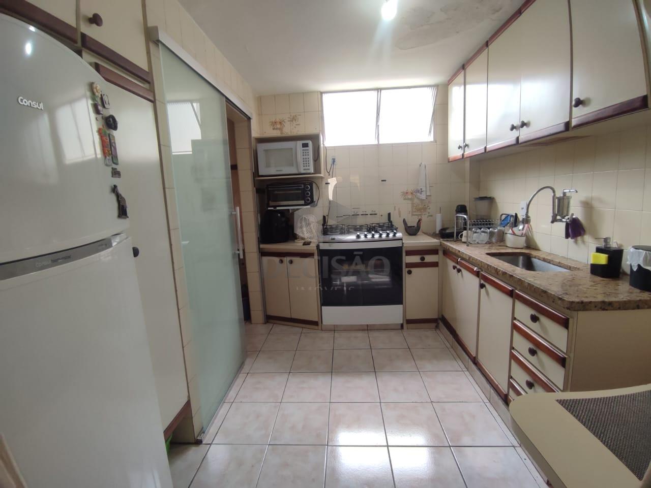 Sala para 02 ambientes 9em porcelanato), 03 quartos com armários (piso em vinílico), sendo 01 suíte, banho social (com box, armários), cozinha ampla com armários, área de serviços e dce.