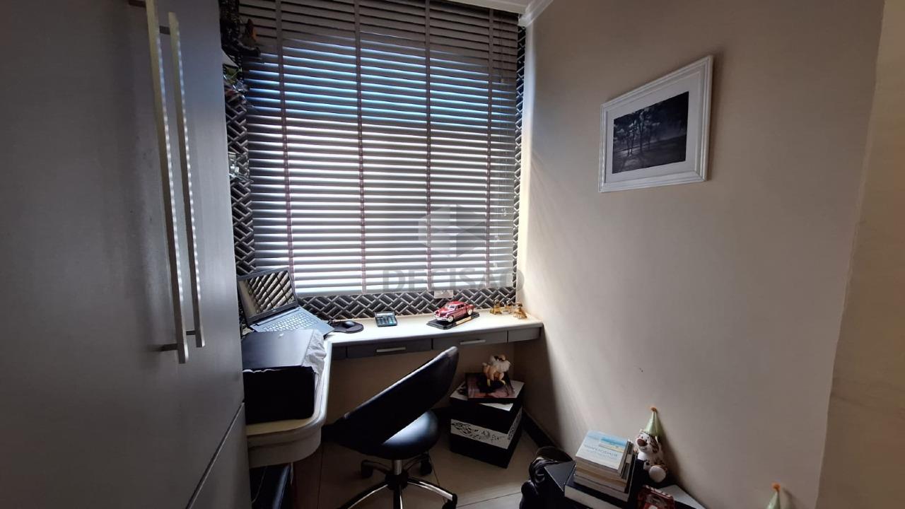 Apto: 02 salas grandes (todo com piso em porcelanato e rodapés em granito escuro), 03 quartos, sendo 01 suíte, banho social (com box blindex, apto reformado está novo, sanca em todos os ambientes com papel de parede, dce (foi transformado em escritório) e o banho em área lavanderia.