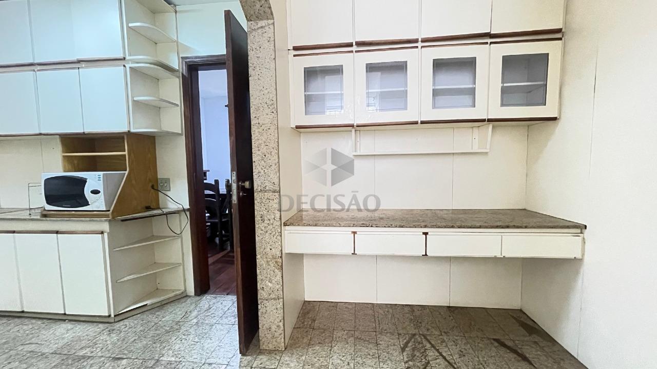 Apto: Sala para 02 ambientes, copa/sala, 03 quartos, sendo 01 suíte com armários, banho social, cozinha com armários, área de serviços e banho de funcionários.