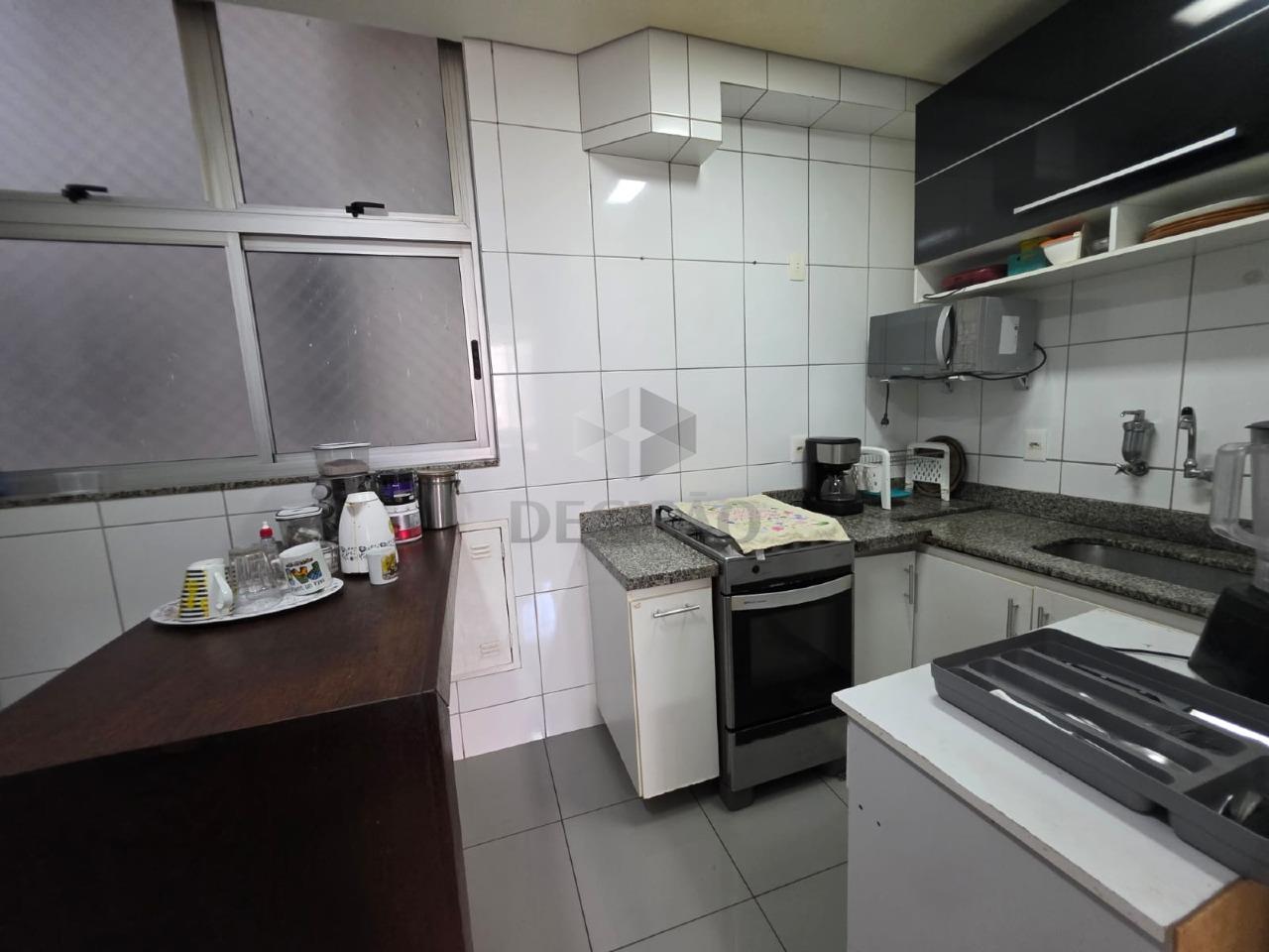 Apto: Sala ampla, copa (tabua corrida), 03 quartos com armários, sendo 01 suíte, banho social, cozinha com armários, área de serviços e banho de empregada.