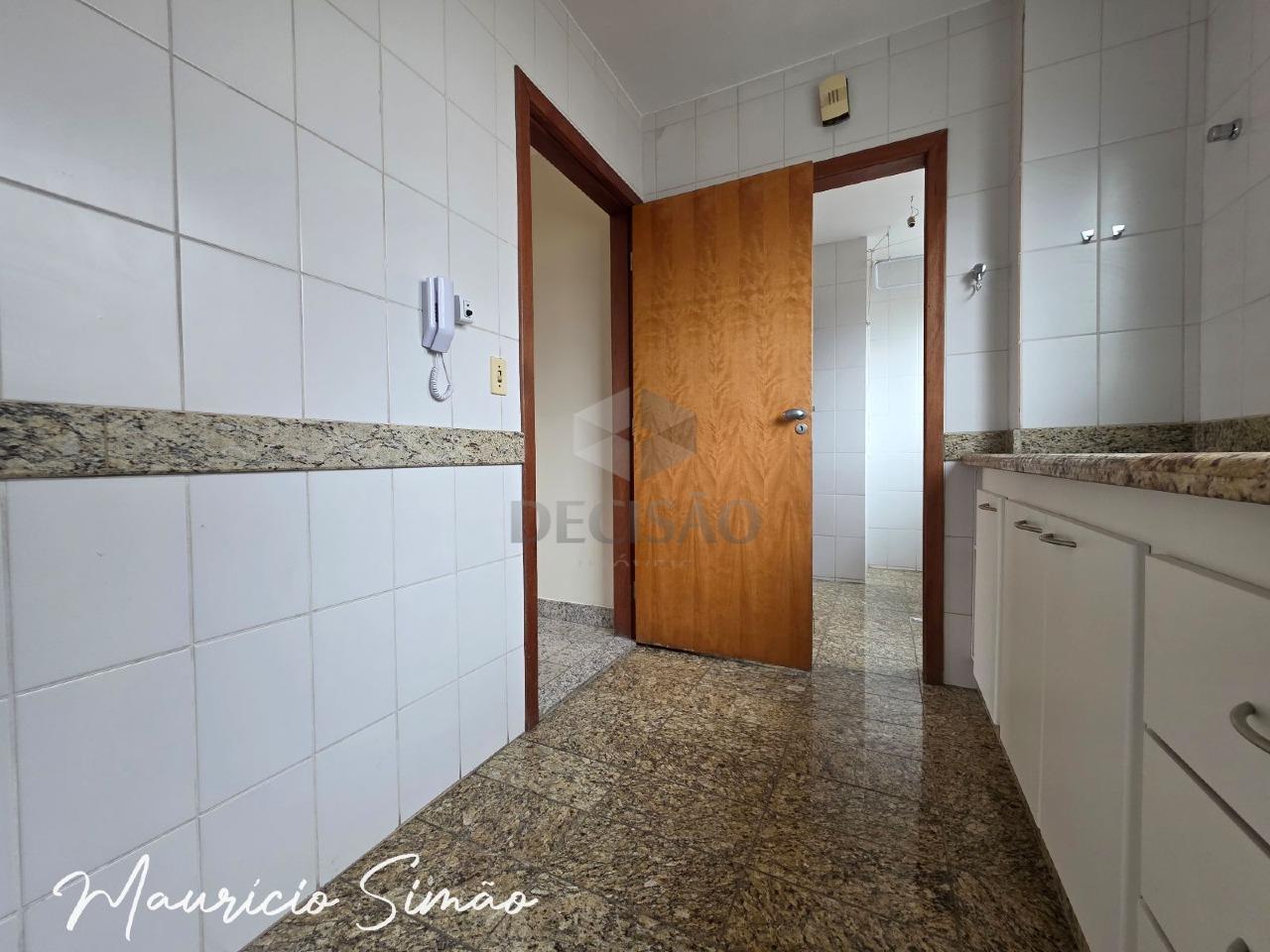 Sala para 02 ambientes (piso em granito), vista, 03 quartos com armários (piso em laminado), sendo 01 suíte, banho social (montados), cozinha em granito, área e banho de serviços.