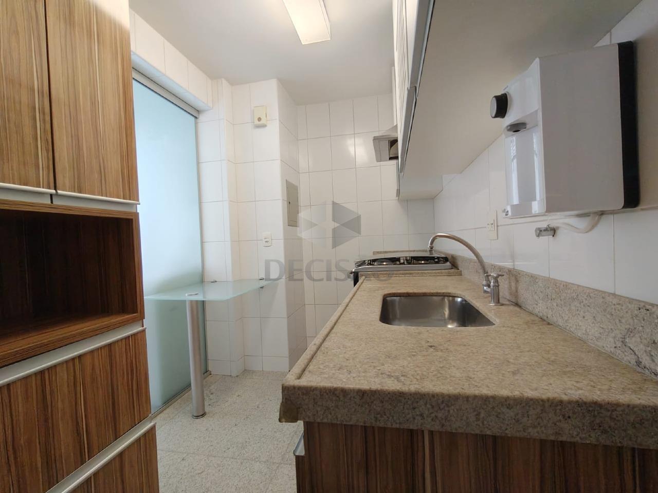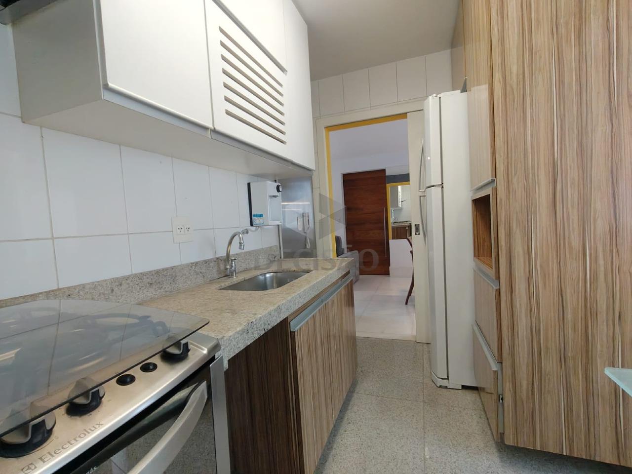 Apto: Salão para 02 ambientes (em mármore), varanda incorporada, teto rebaixado e iluminação indireta, 03 quartos com armários, 02 banhos sendo social e suíte (montados), cozinha montada, área de serviços, banho de empregada.