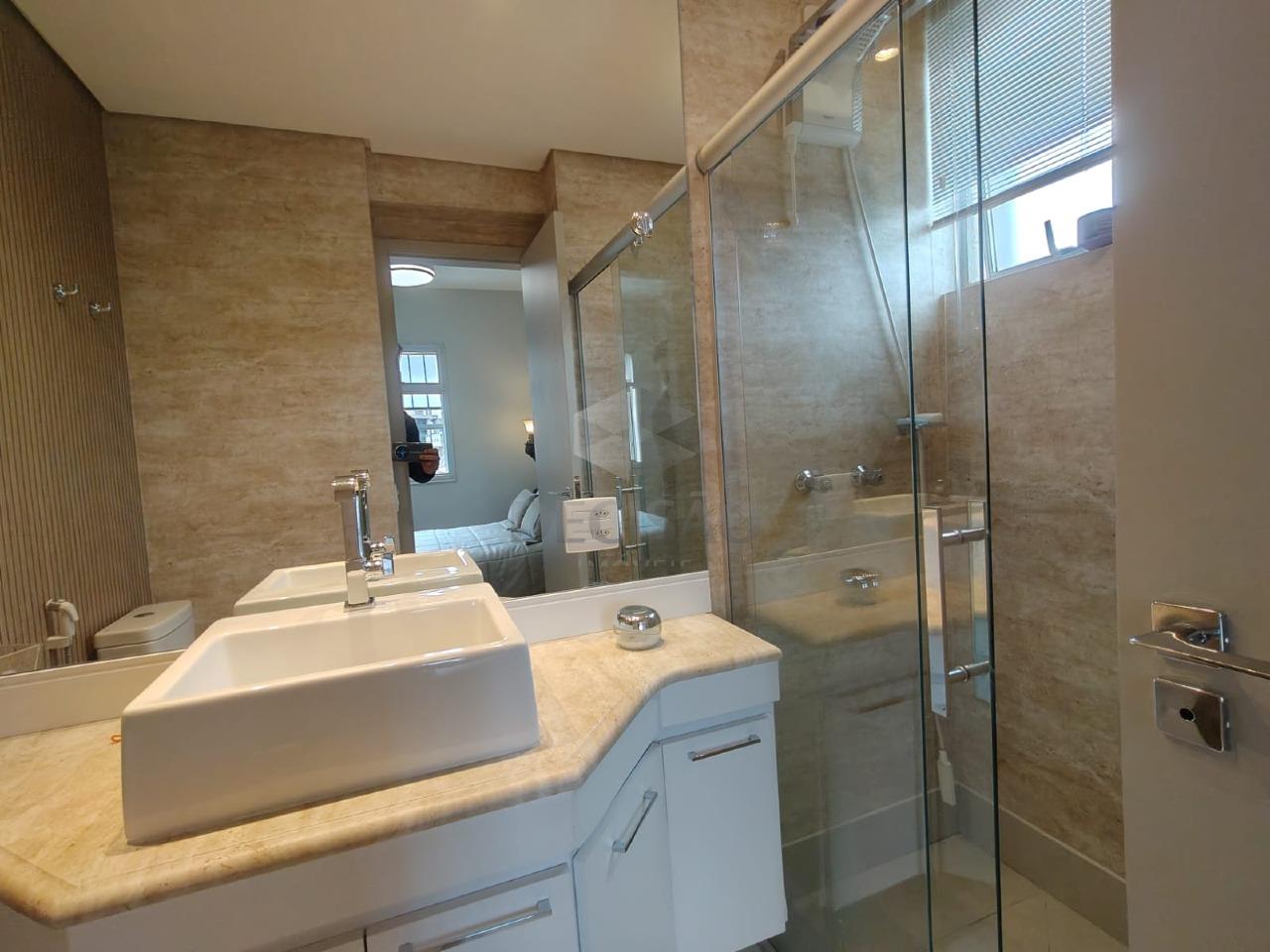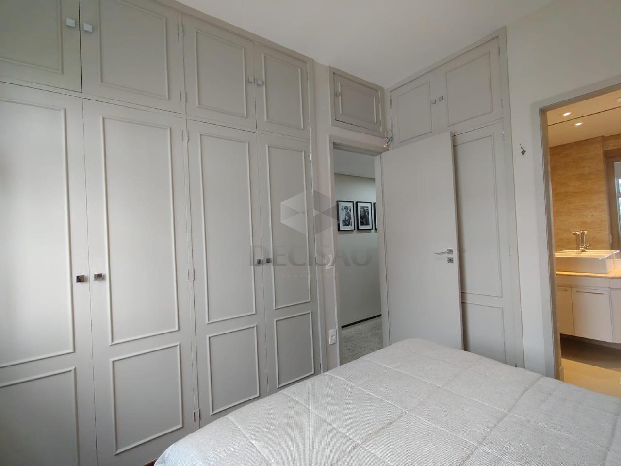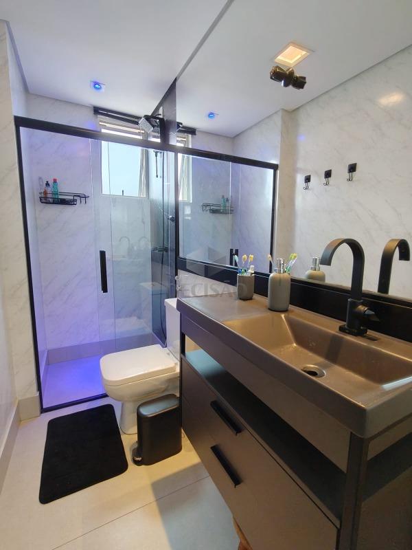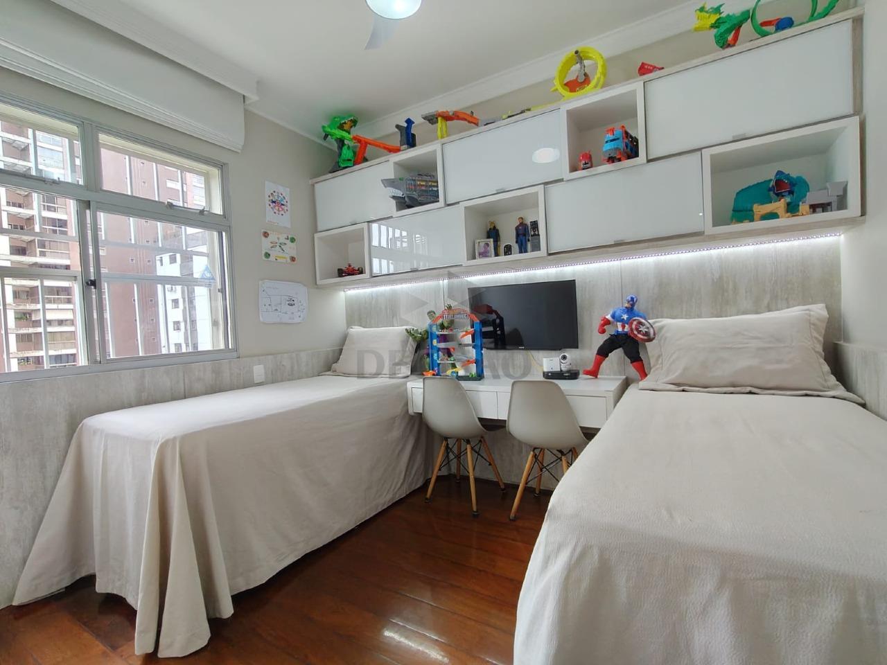 Salão para 02 ambientes (em porcelanato), teto rebaixado e iluminação indireta, 03 quartos com armários, 02 banhos montados, sendo social e suíte, cozinha com armários, área de serviços, dce.
