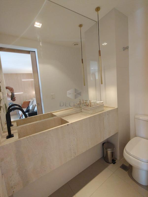 Apto: Salão para 02 ambientes, teto rebaixado e iluminação indireta, lavabo, varanda incorporada, 03 quartos com armários, sendo 01 suíte e 02 semi-suítes (todas montadas), cozinha americana montada, área de serviços.