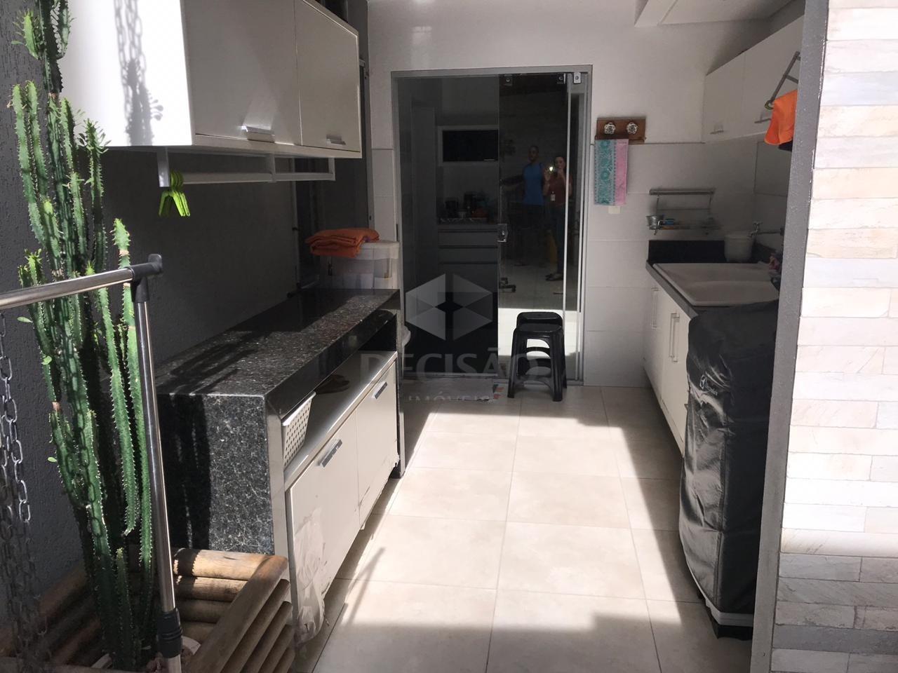Apto: Sala com copa (em granito), jardim de inverno em madeira de lei, 03 quartos com armários (piso em laminado de madeira), sendo 01 suíte (com closet muito espaçoso - com box e armários), banho social (com piso em granito, box blindex - bojo sobre posta em bancada de madeira), rouparia, cozinha em granito com armários sob e sobre bancada, área de serviços com bojo duplo, armários sob e sobre bancada, churrasqueira a gás no espaço gourmet, brinquedoteca.
