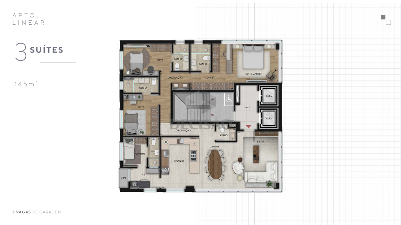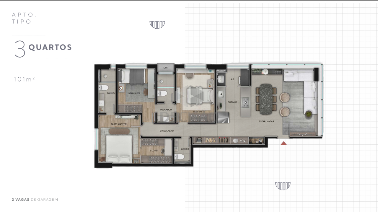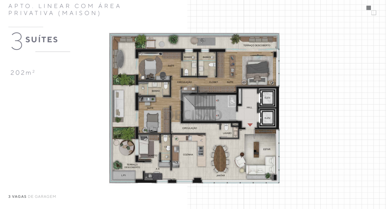 Apto: Excelente, salão para 02 ambientes, lavabo, espaço para cristaleira ou home office, 03 quartos, sendo 01 suíte (com closet) e 02 semi-suítes, cozinha no conceito aberto e área de serviços.