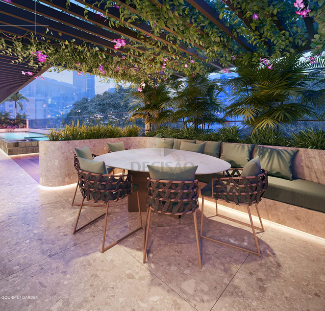 Prédio: Alto luxo, moderno, 100% revestido em granito/vidro, jardim, hall social, 02 elevadores, guarita, água e gás individualizados, alarme, aquecimento solar, circuito tv, interfone, jardim, lazer premium montado e decorado, espaço delivery, academia, churrasqueira, piscina, playground, salão de festas, sauna, wifi, gerador, portão eletrônico, 02 vagas (vide tabela).