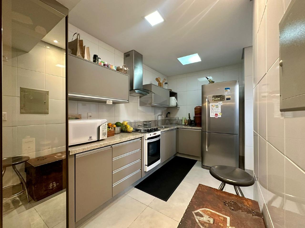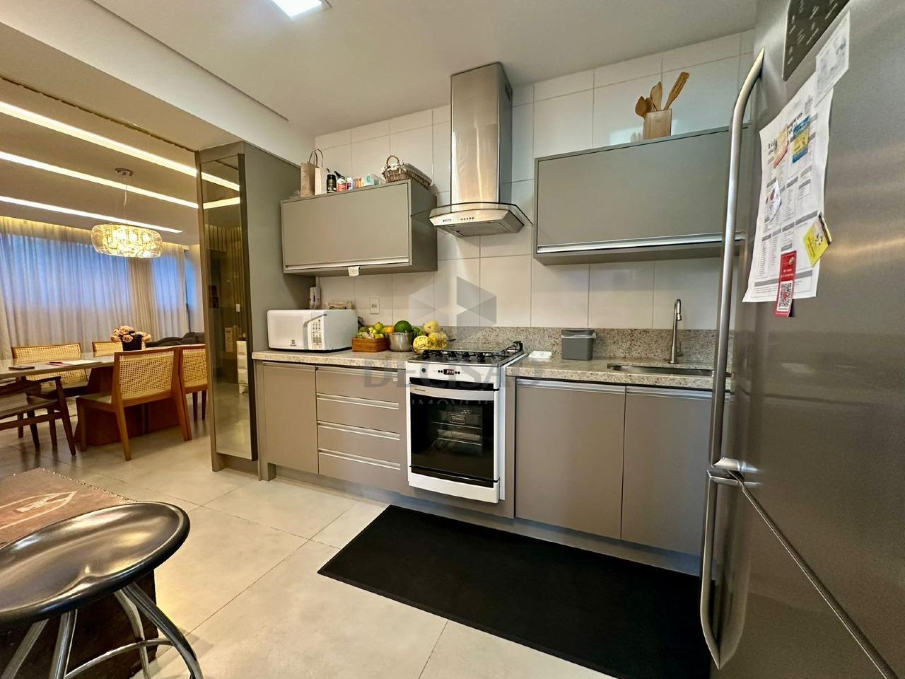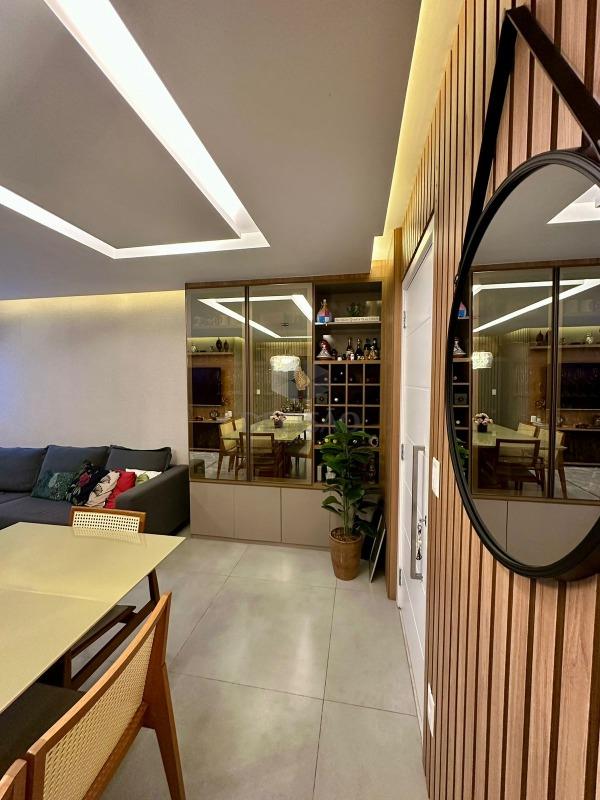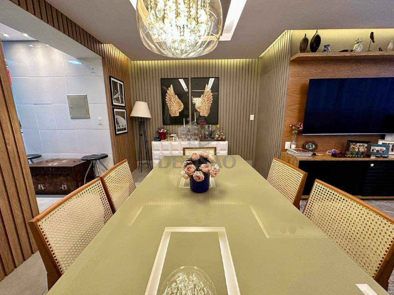 Sala para 02 bons ambientes, com varanda incorporada, projeto de marcenaria impecável, iluminação planejada com teto rebaixado, 03 quartos, sendo 01 suíte e banho social (montados com armários, box), cozinha no estilo americana com excelentes armários e acabamento, área de serviços e banho de serviços (transformado em despensa)