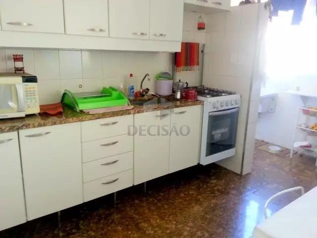 Apto: Salão para 02 ambientes (em mármore), varanda incorporada, 03 quartos com armários (piso em tabua corrida), sendo 01 suíte, banho social (box, armários), cozinha com armários, área de serviços e dce.