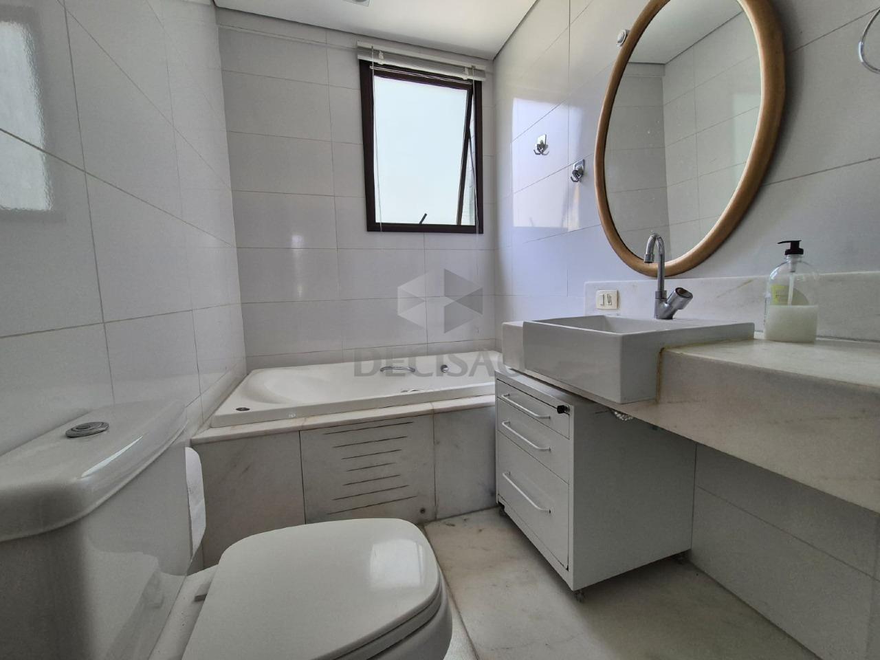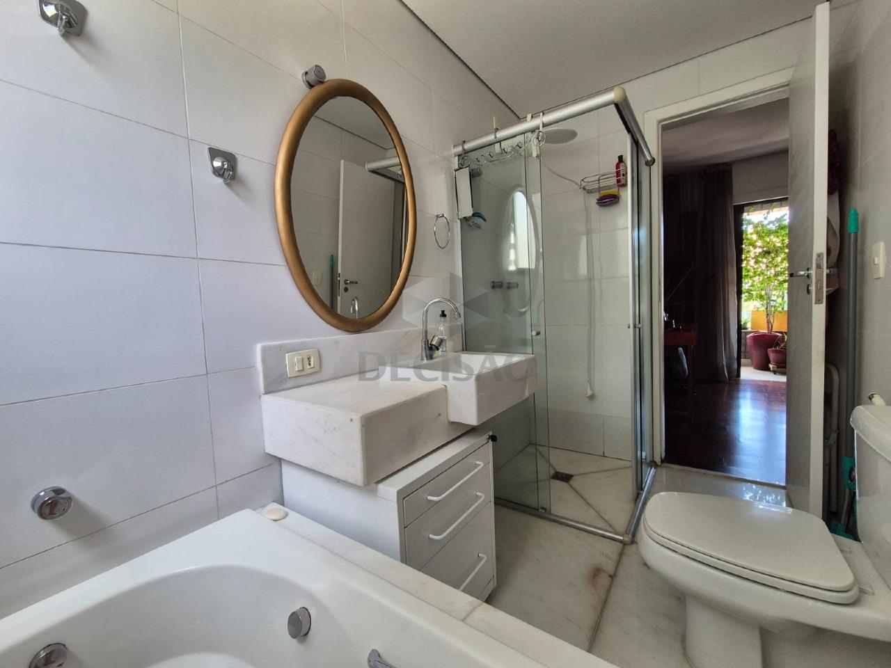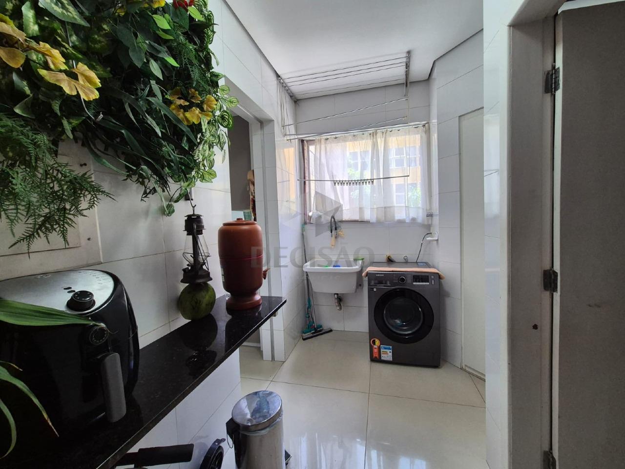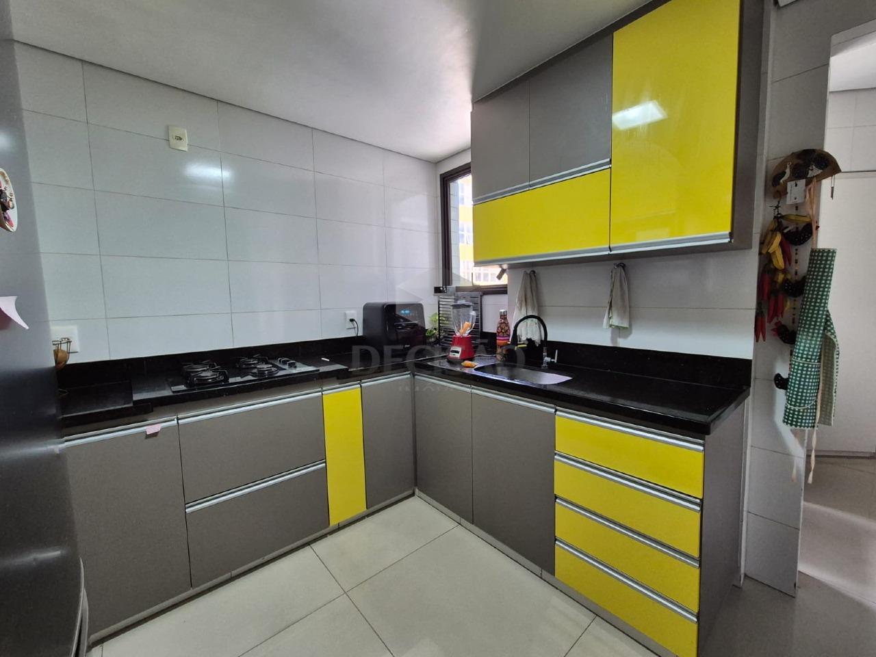 Sala ampla para 02 ou mais ambientes com piso em porcelanato, varanda integrada, 03 quartos com armários, sendo 01 suíte (com closet - com piso em bancada em mármore, box e banheira de hidro), banho social (com box - piso e bancadas em mármore branco), cozinha ampla, clara e arejada com armários sob e sobre bancada, área de serviços ampla com dce.
