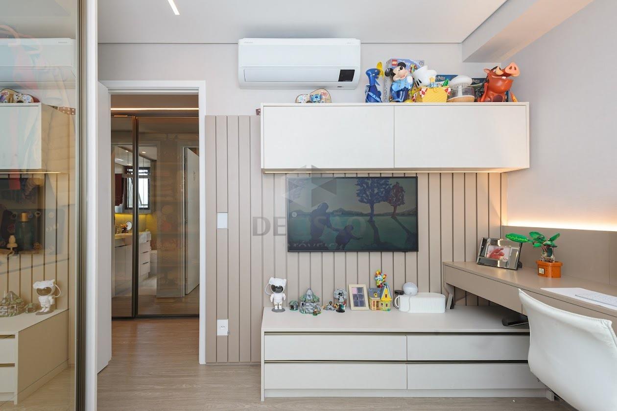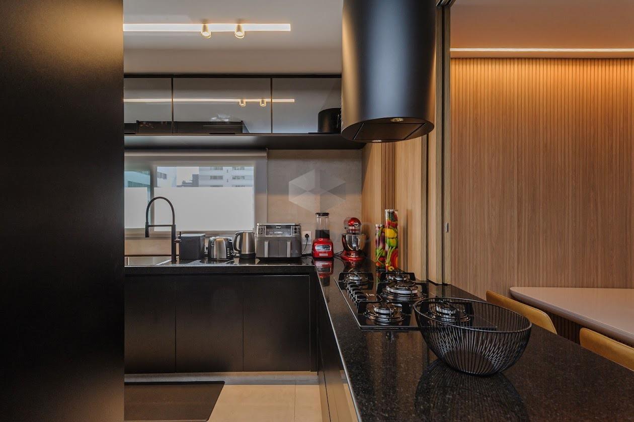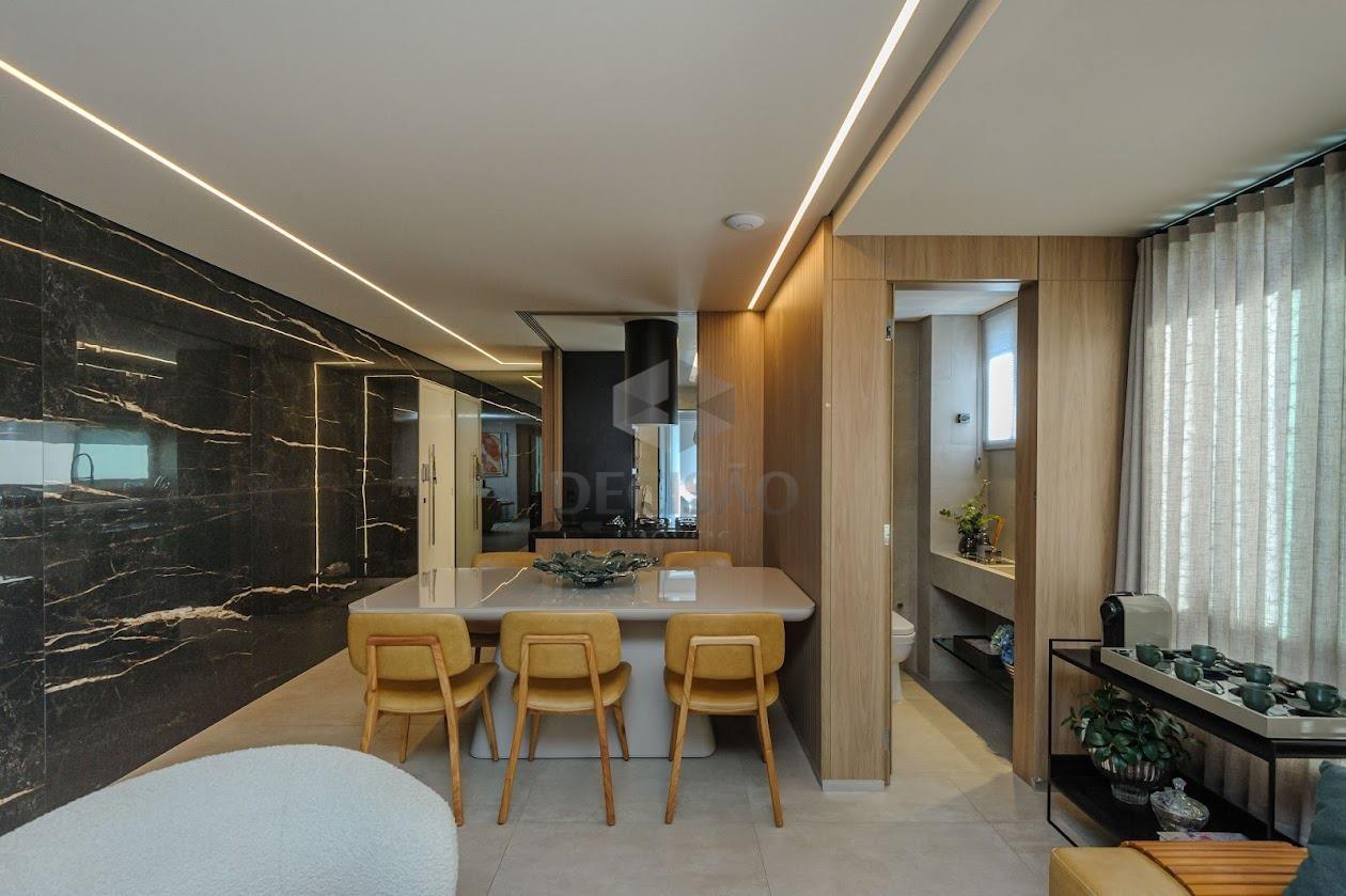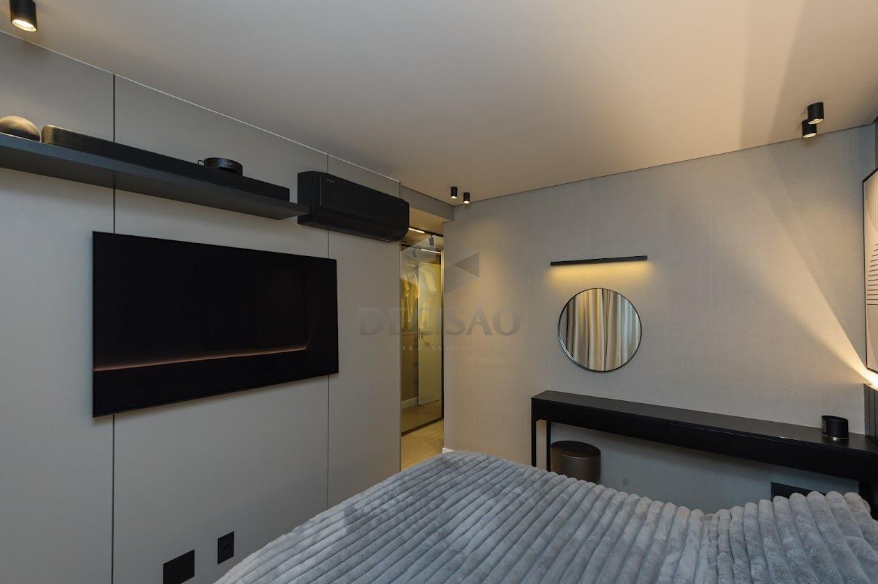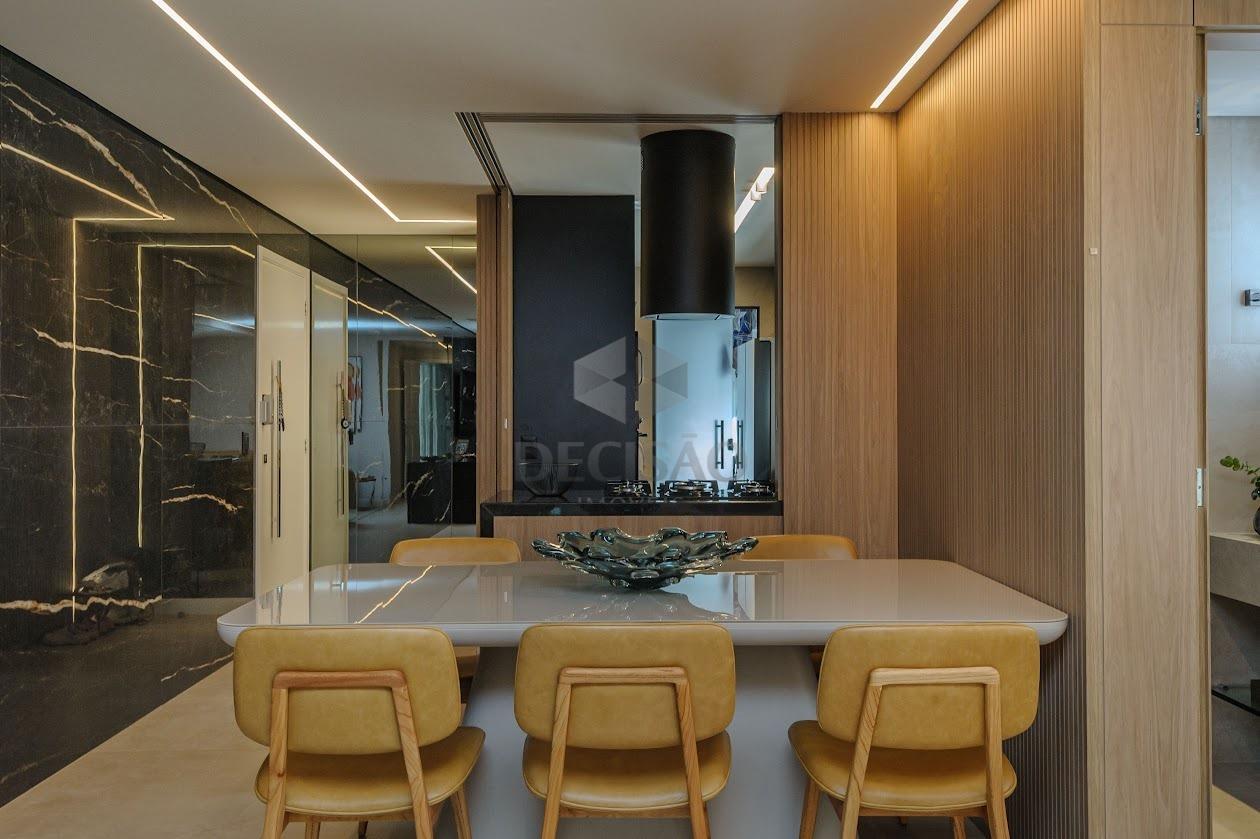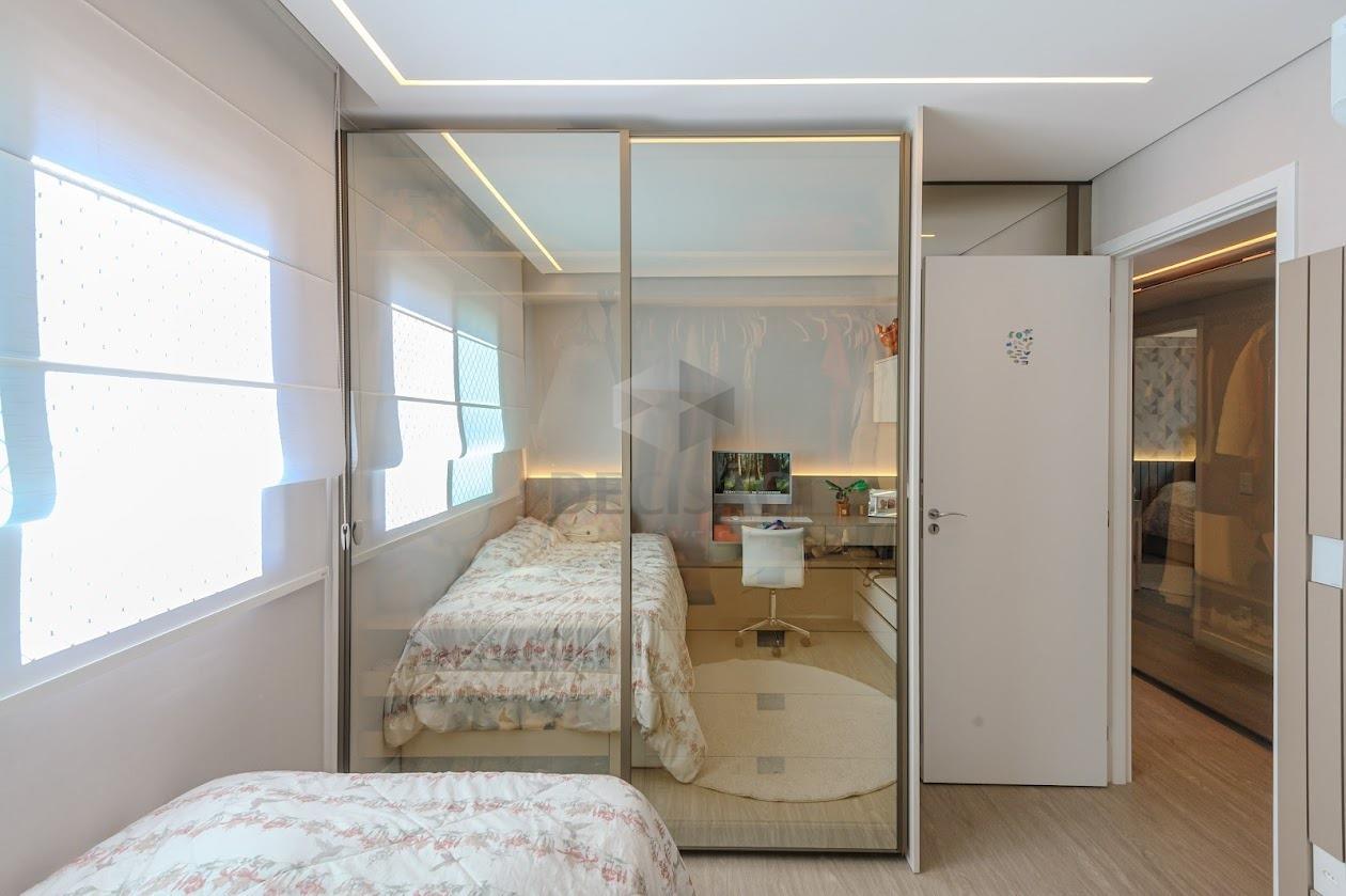 Salão para 02 ambientes, ar-condicionado, sistema de som, marcenaria, lavabo, cristaleira, 03 quartos montados, venezianas elétricas, ar-condicionado, sendo 01 suíte e banho social, cozinha montada, despensa, área e banho de serviços.