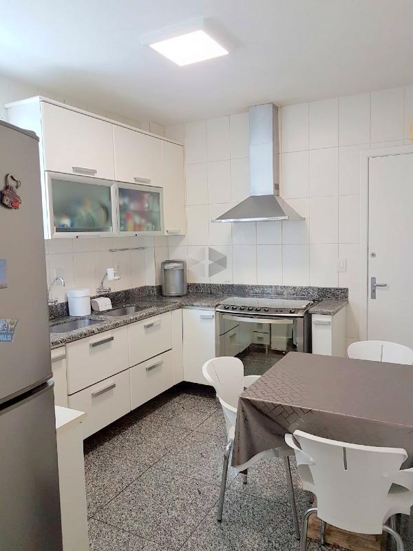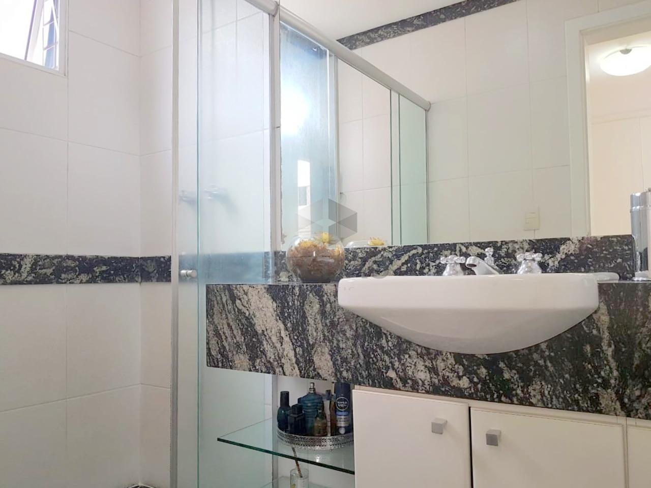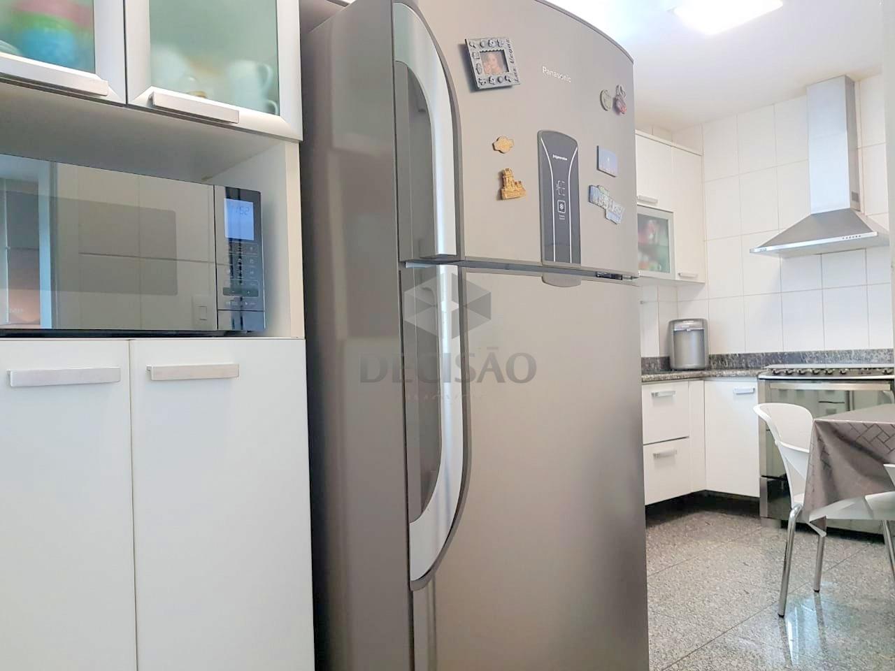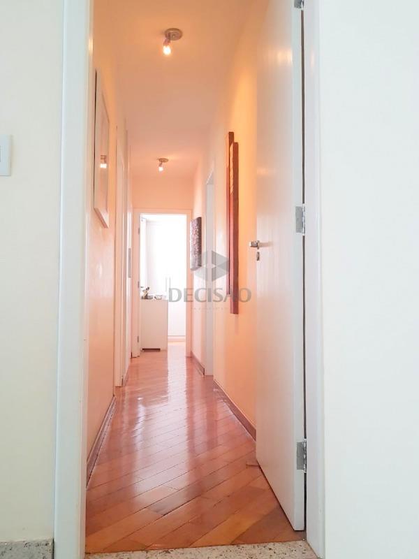 Apto: Amplo! Excelente! Salão para 02 ambientes, com rebaixamento de gesso e iluminação embutida (piso em granito 90 x 90) varanda fechada com blindex (podendo ser um estar-intimo), 03 ótimos quartos, sendo 01 suíte ampla (piso em tacão), banho social e suíte (com box blindex e armários sob bancada - com piso em granito diferenciado), rouparia, excelente cozinha com armários sob e sobre bancada, área de serviços com armários.