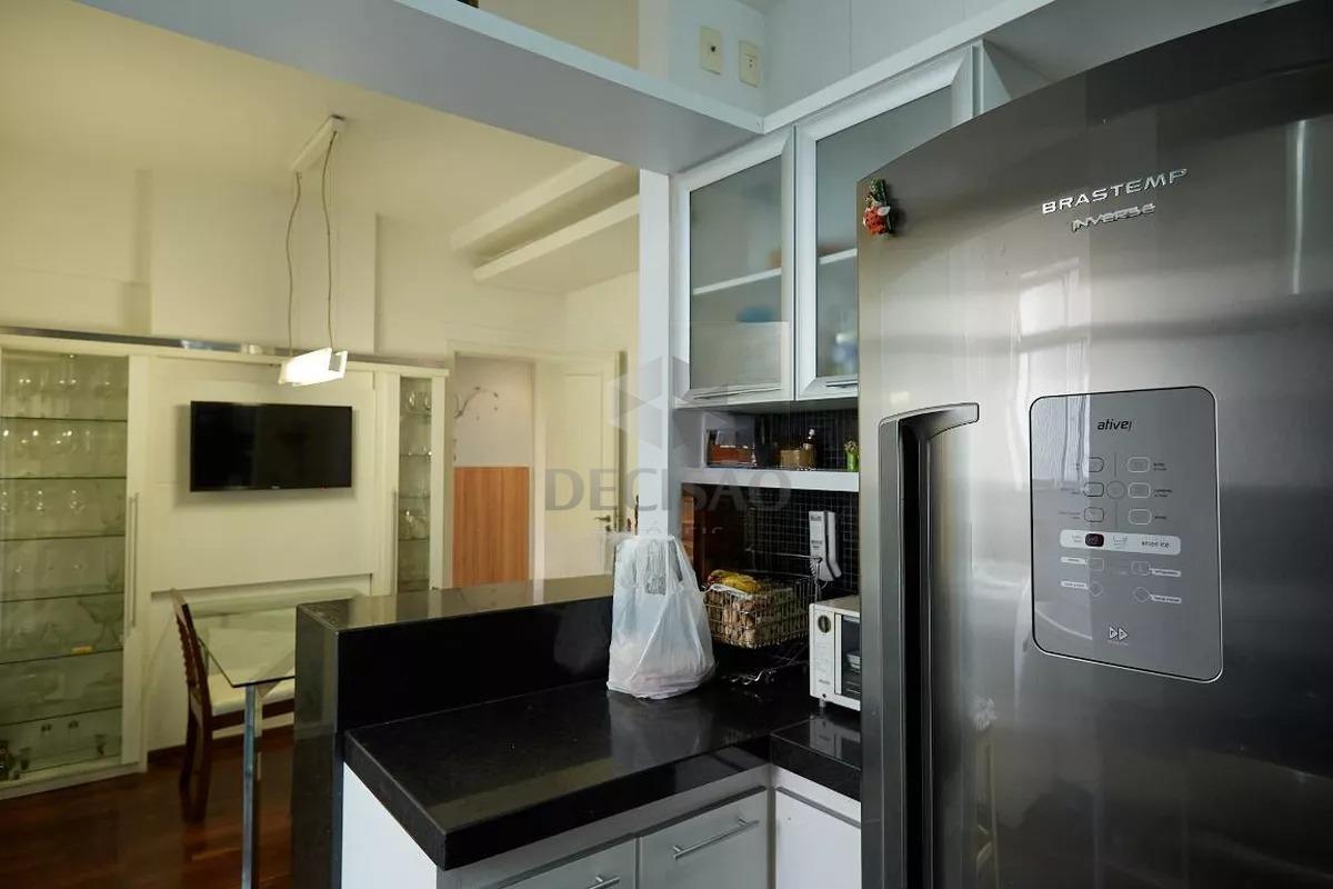 Apto: 02 salas com teto rebaixado e iluminação indireta, 03 quartos com armários, sendo 01 suíte, suíte 9com hidro), banhos (montados), cozinha estilo americana planejada com armários, área de serviços arejada.