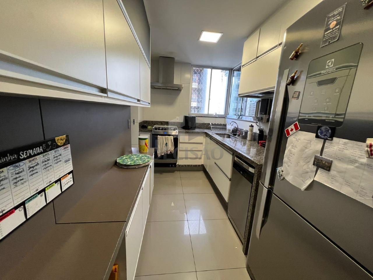 Apto: Sala para 02 ambientes, varanda integrada, com passa prato para a cozinha, 03 quartos com armários, sendo 01 suíte (com closet e varanda), banhos (montados), cozinha planejada com armários, área de serviços com banho de empregada.