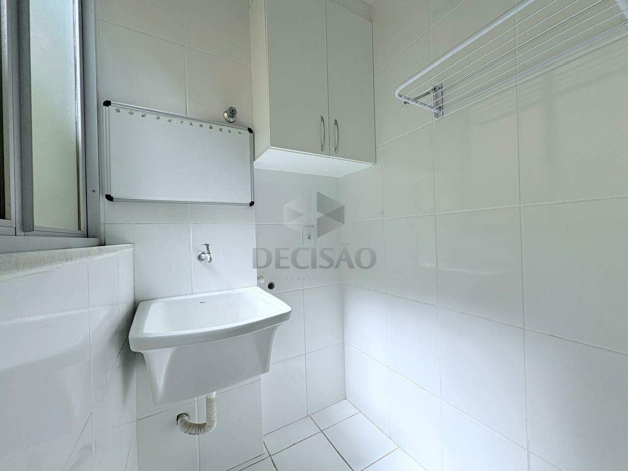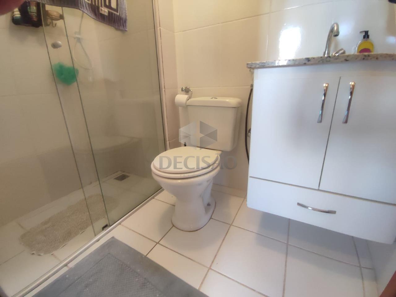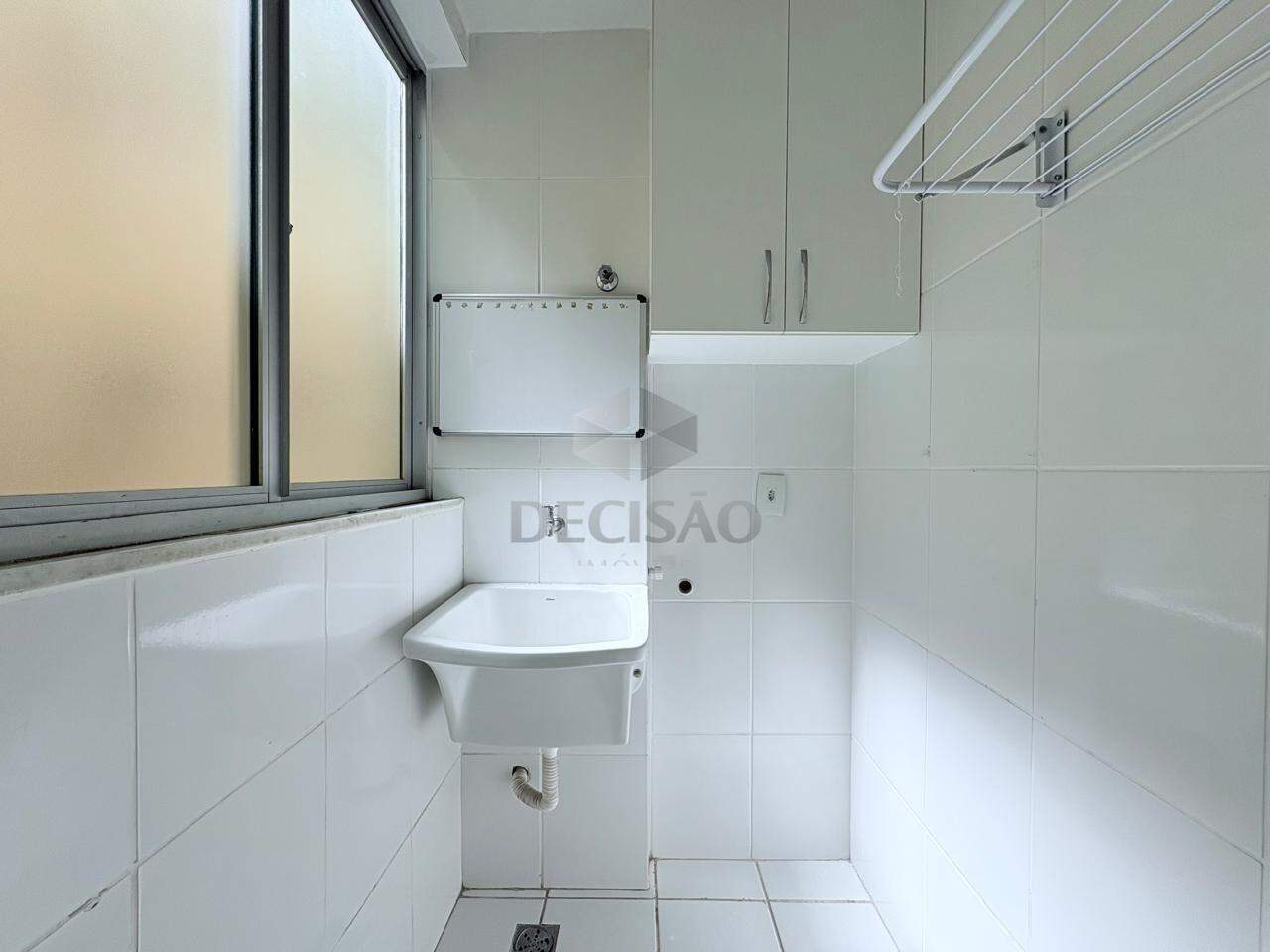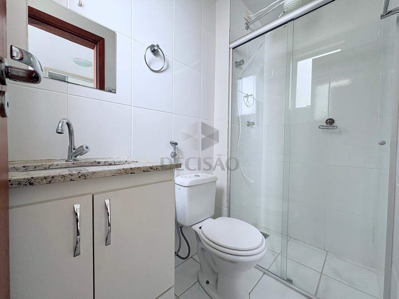 Sala para 02 ambientes (piso em porcelanato), com vista, 03 quartos com armários, sendo 01 suíte, banho social (com box, armários e espelho), cozinha com armários e área de serviços.