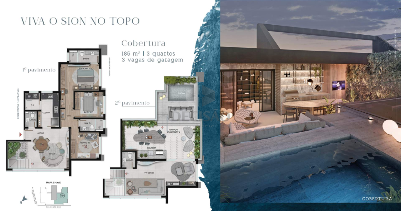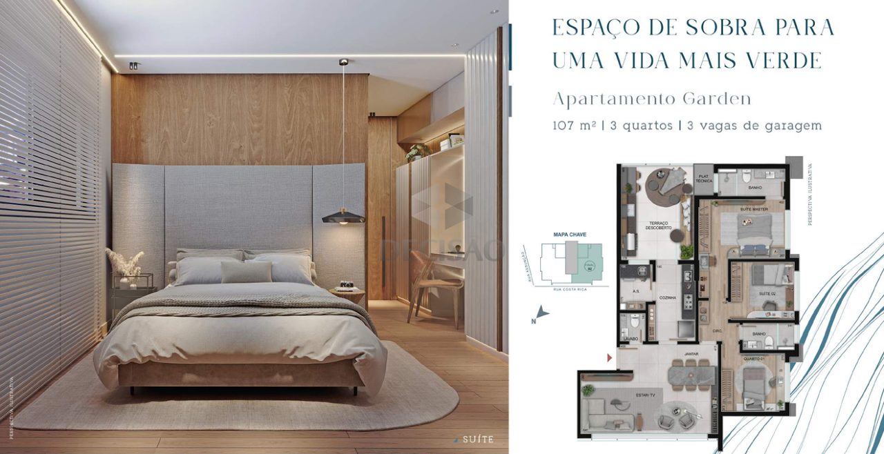 Prédio: Rua plana, alto padrão, 100% revestido, recuado, jardins, hall social, água individual, circuito tv, gás canalizado, interfone, jardim, lazer com salão de festas, churrasqueira, academia, home office, espaço kids, energia solar, previsão para ar-condicionado, vaga para carro elétrico, 02 ou 03 vagas de garagem (vide tabela).